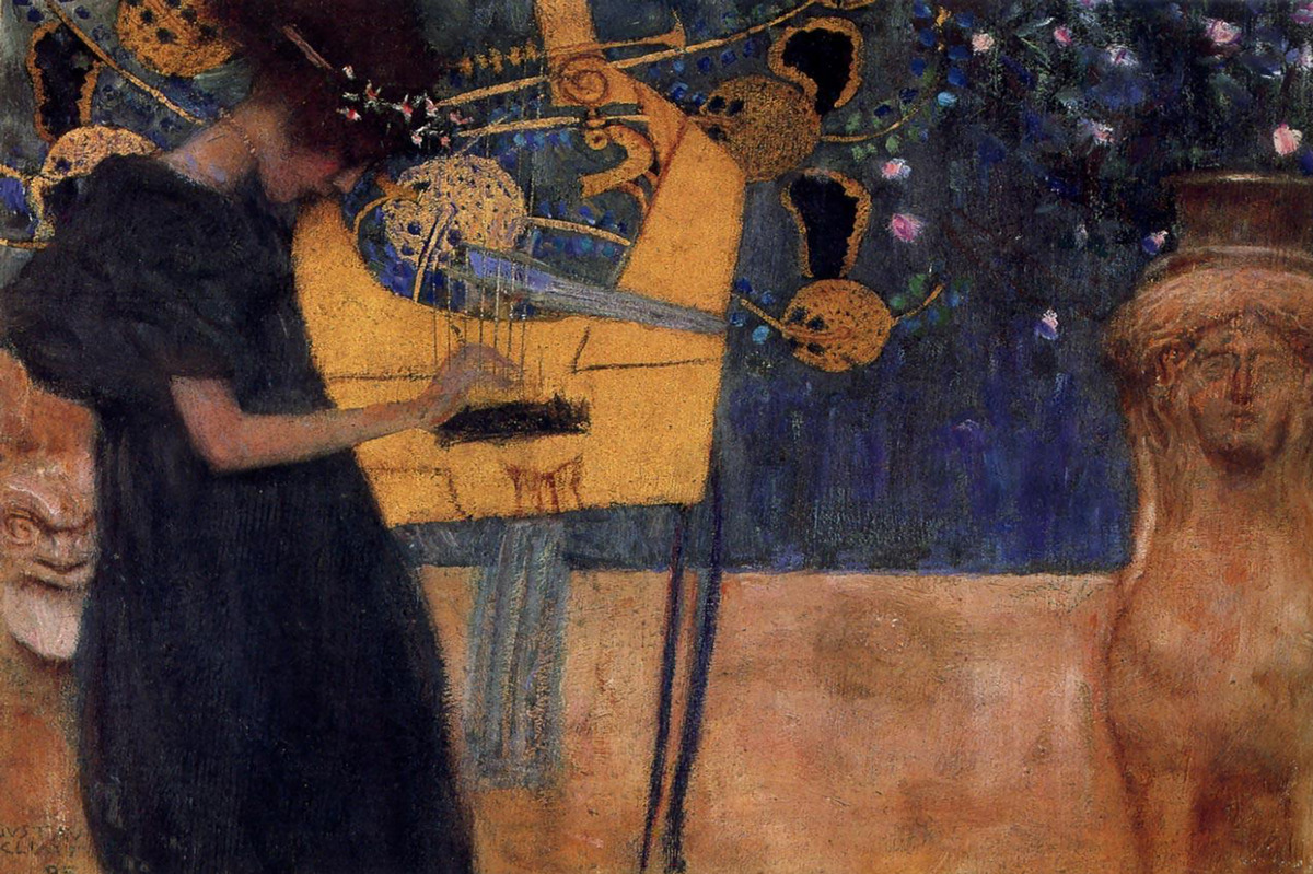 Portrait d'une femme tenant un instrument de musique dans ses mains