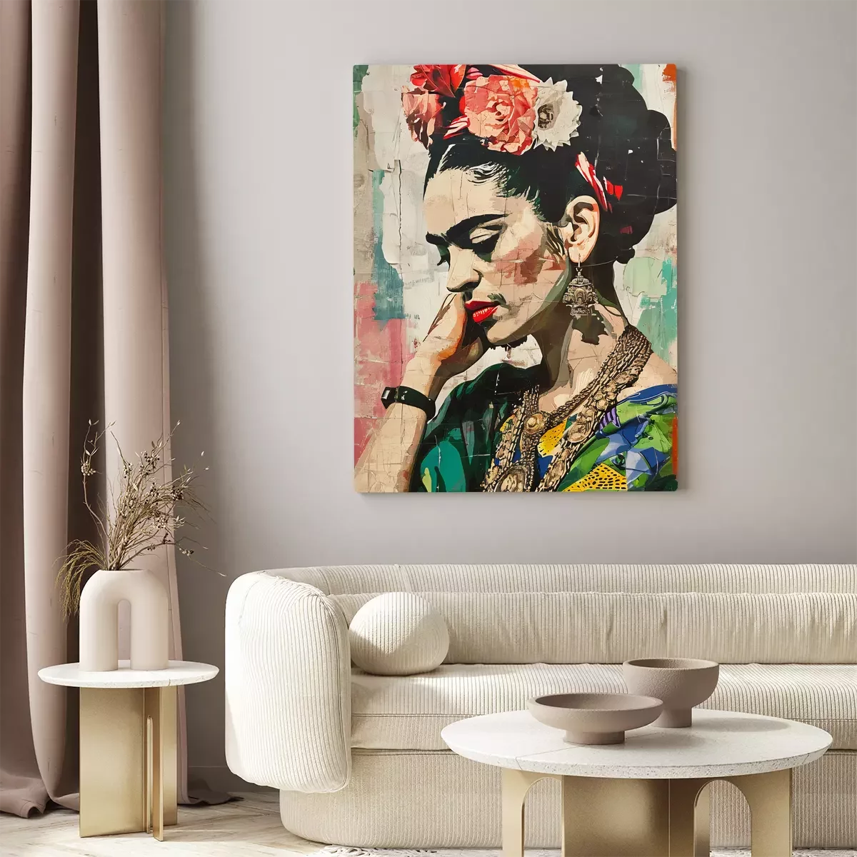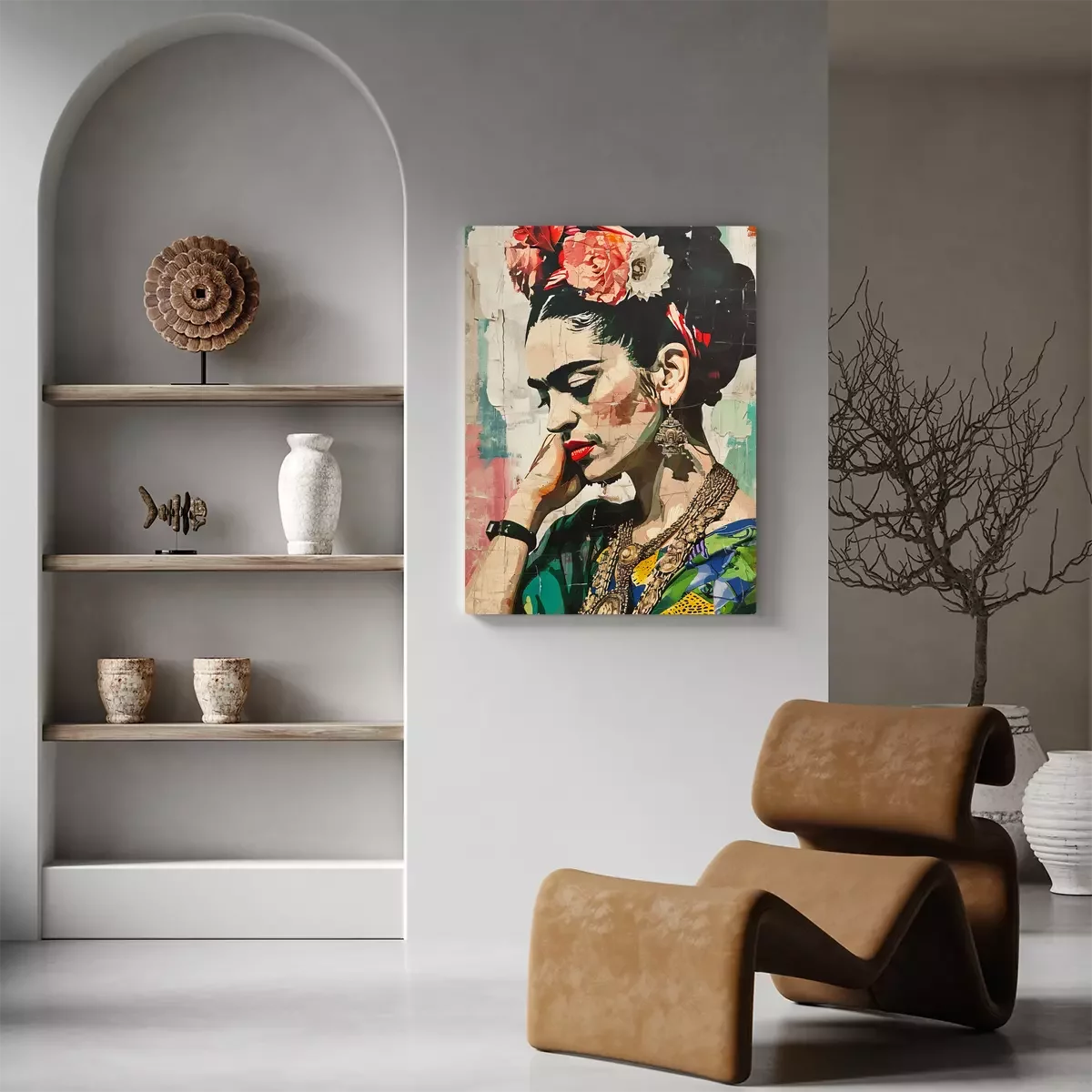 Portrait de frida kahlo avec des fleurs de profil