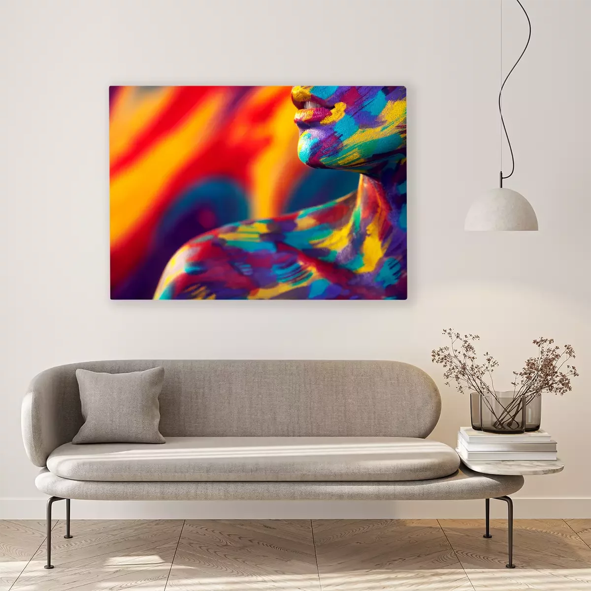 Tableau  Portrait de la belle femme brillante avec maquillage coloré et bodyart