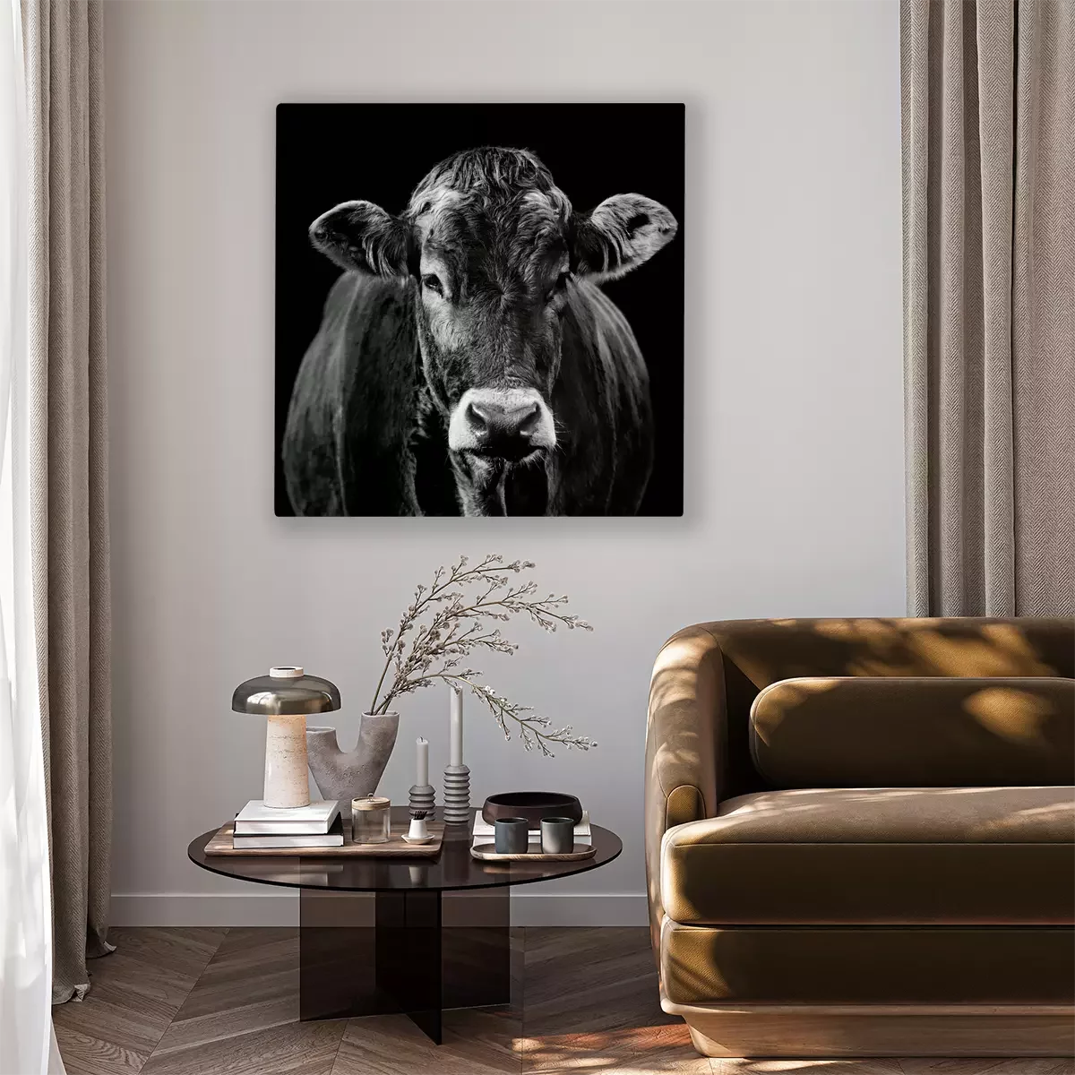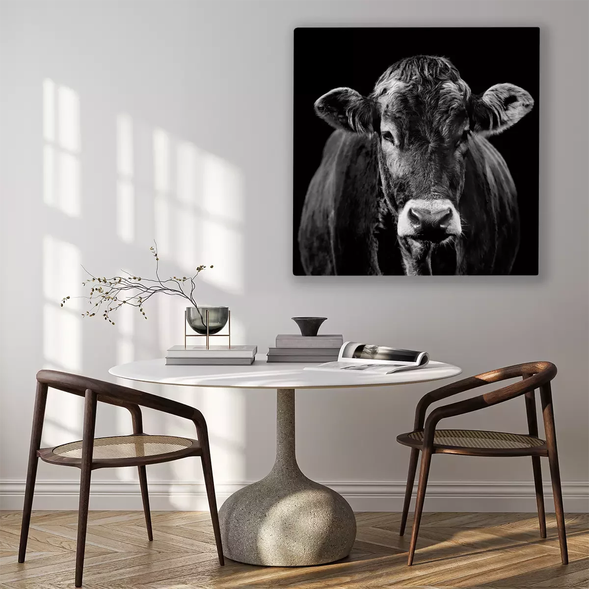 Tableau  Portrait en noir et blanc d'une vache