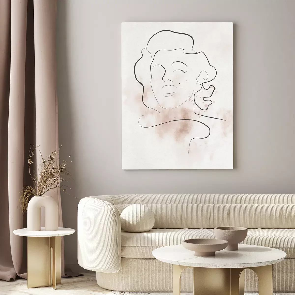 Portrait en une ligne de marilyn monroe avec des touches de beige