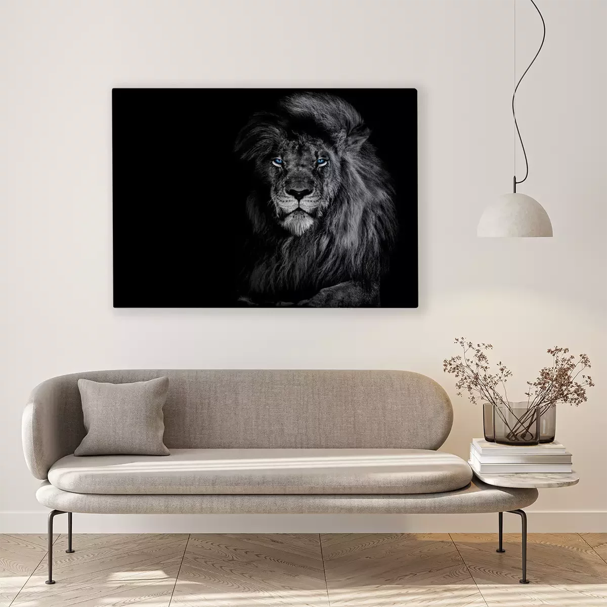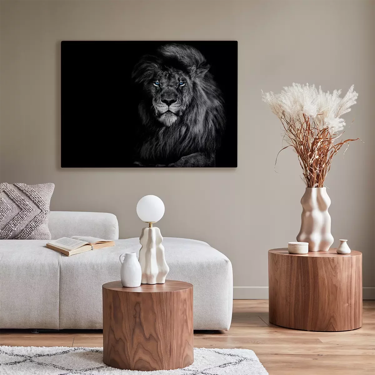 Tableau : Portrait monochrome d'un lion majestueux