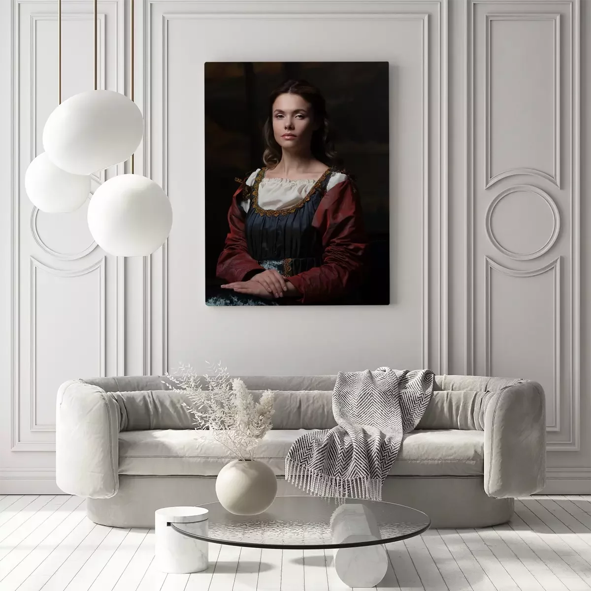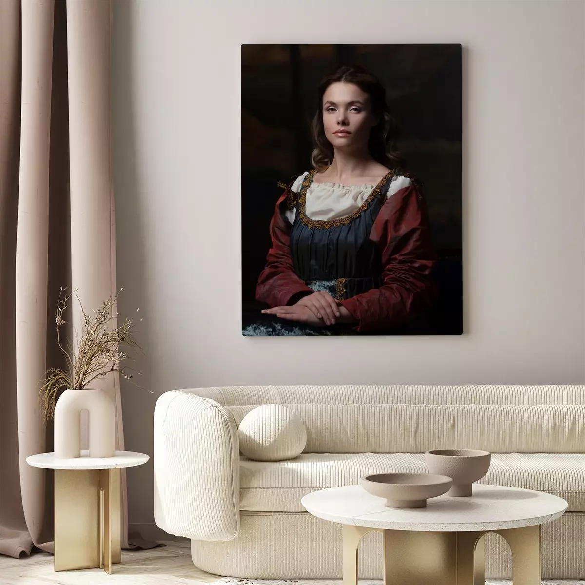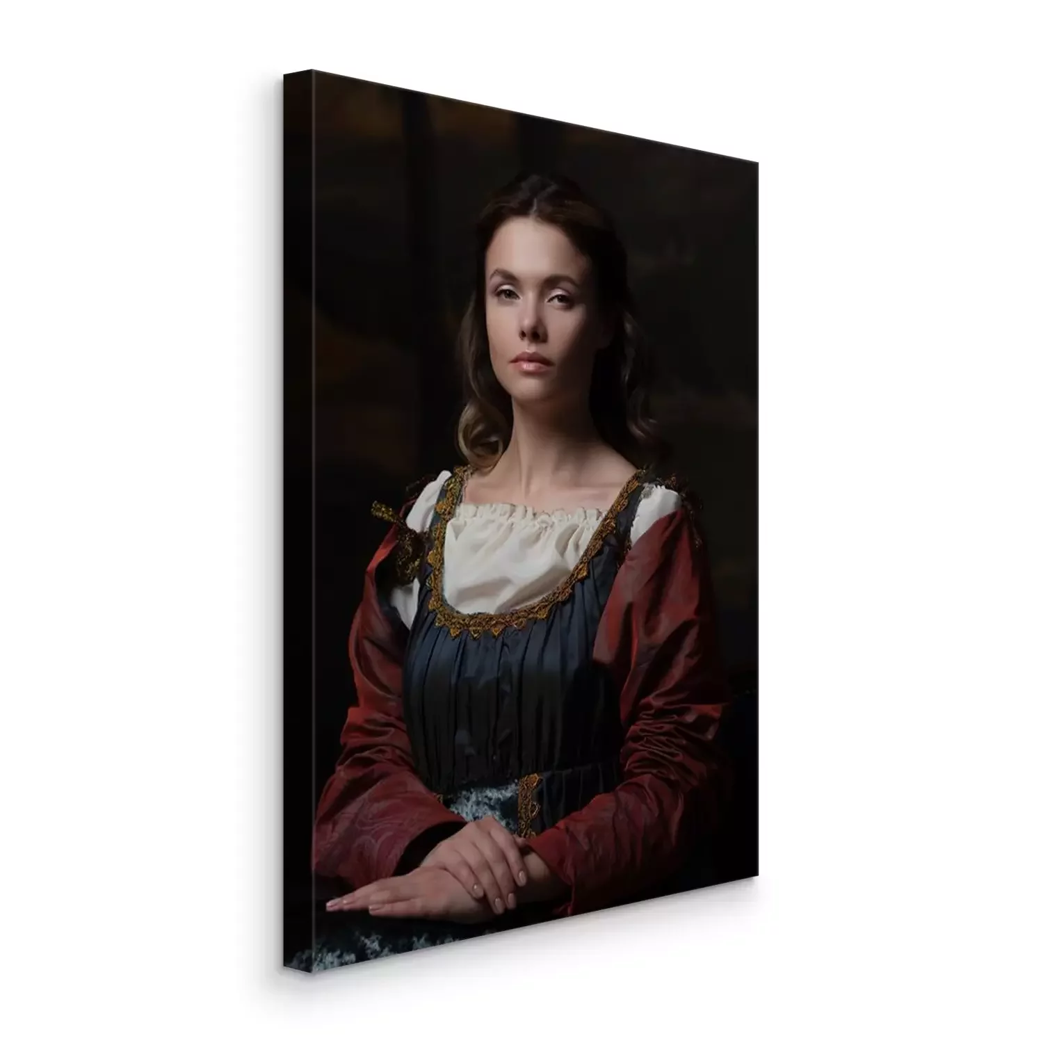 Tableau : Portrait of a young woman in the style of a Renaissance painting.