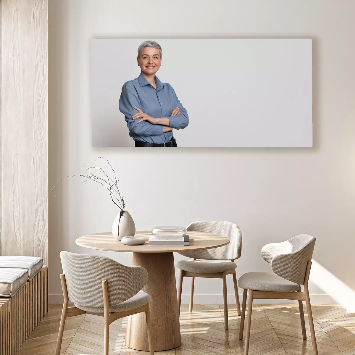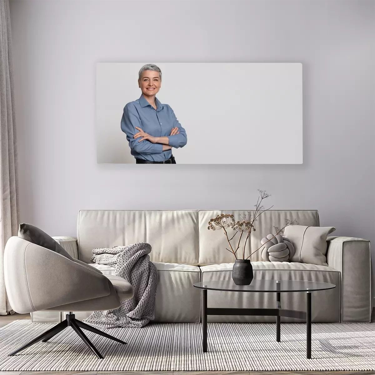 Tableau  Portrait Of Mature Businesswoman Posing With Folded Arms Over Light Background