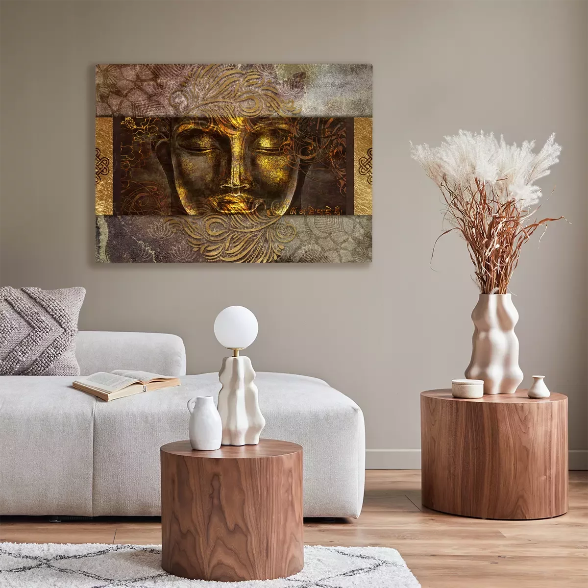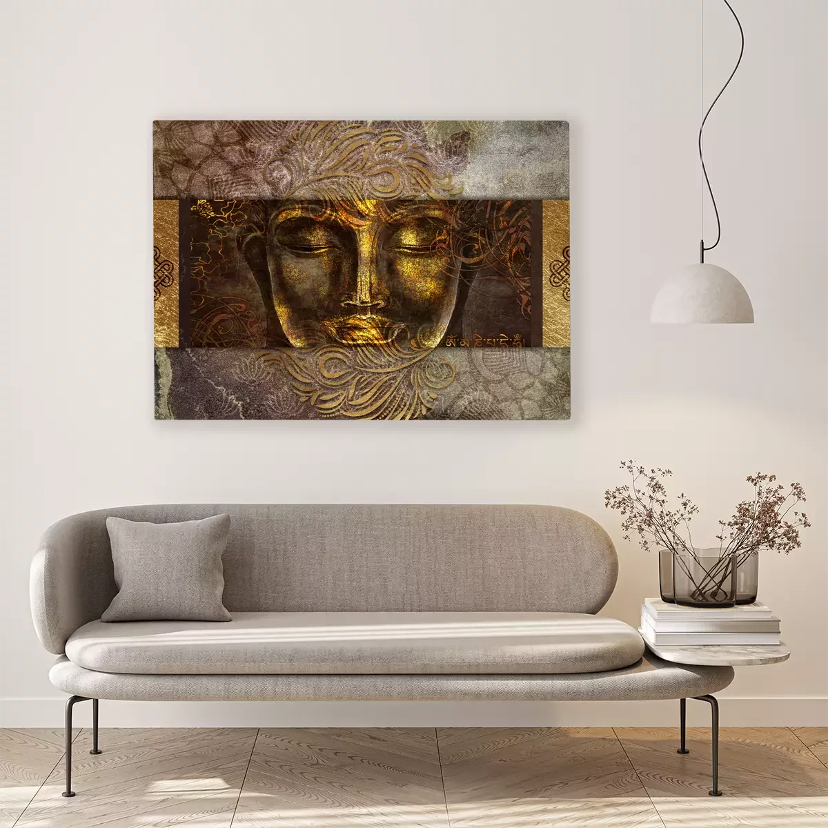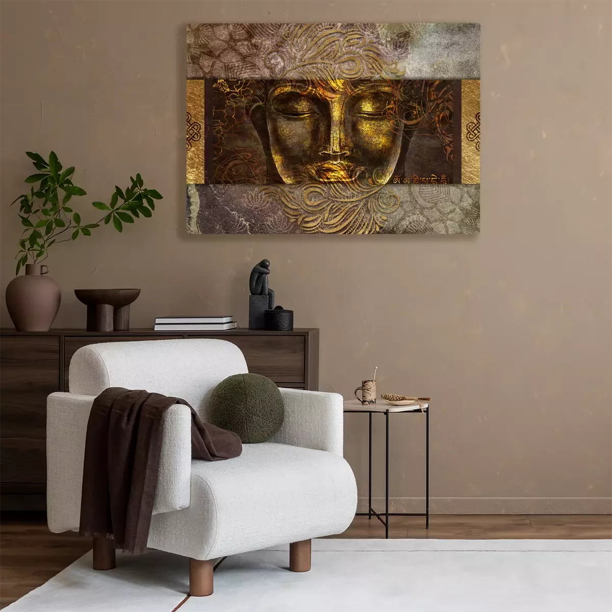 Portrait ornemental de bouddha aux couleurs dorées
