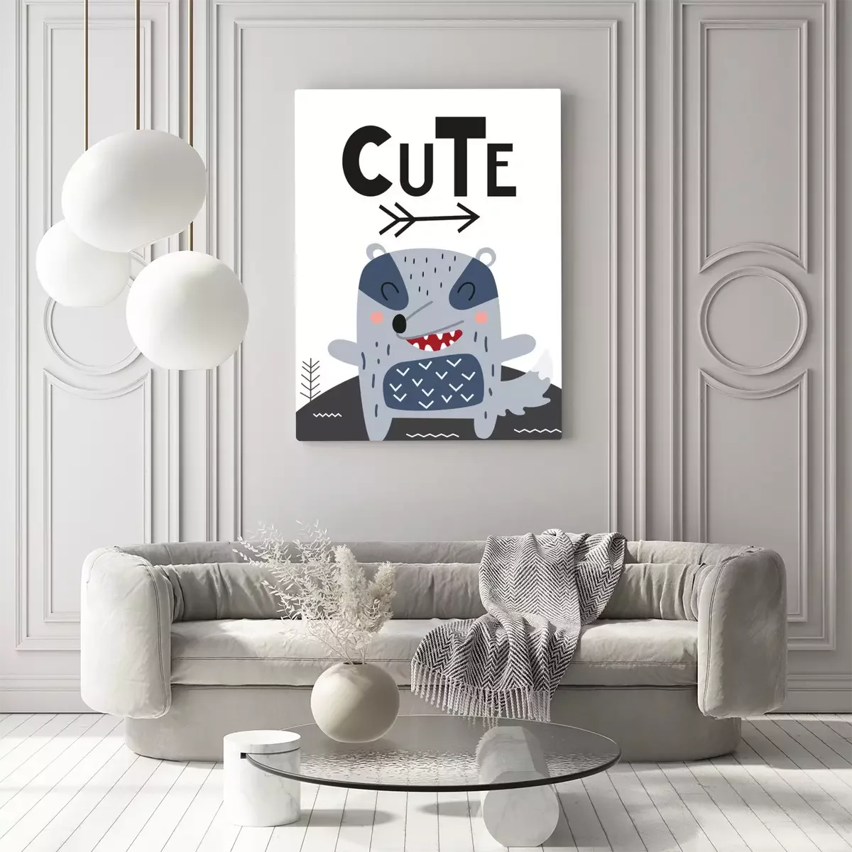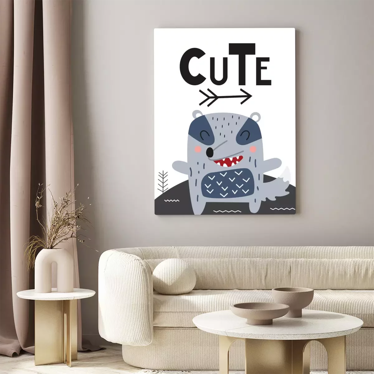 Tableau  Poster for nursery scandi design with cute badger in Scandinavian style. Vector Illustration. Kids illustration for baby clothes, greeting card, wrapping paper. Lettering Cute.