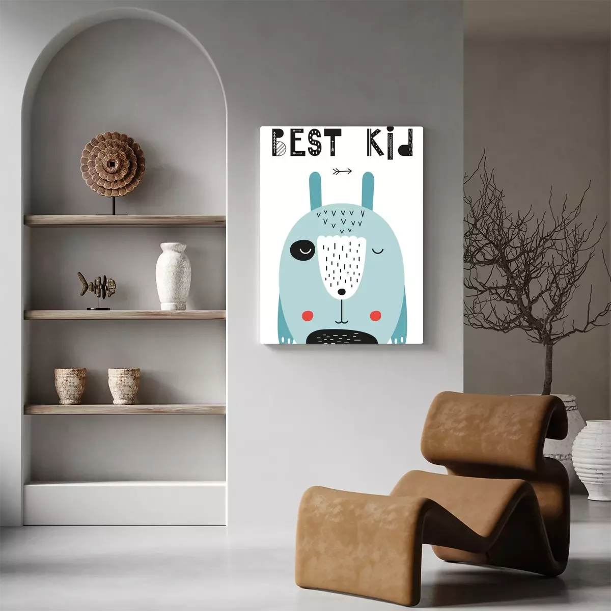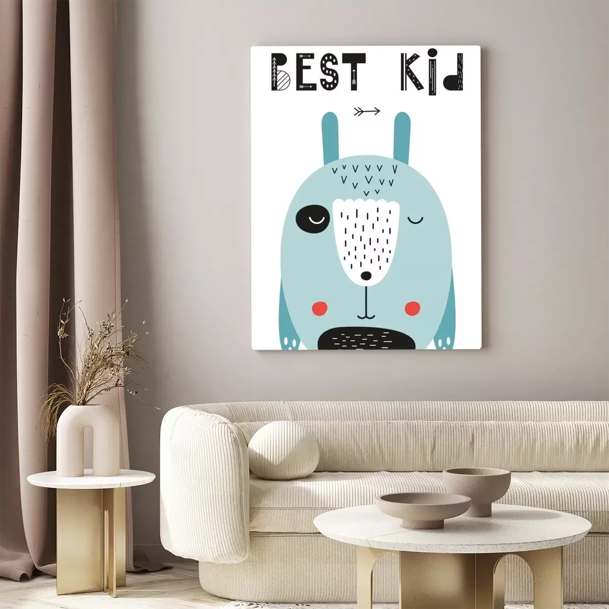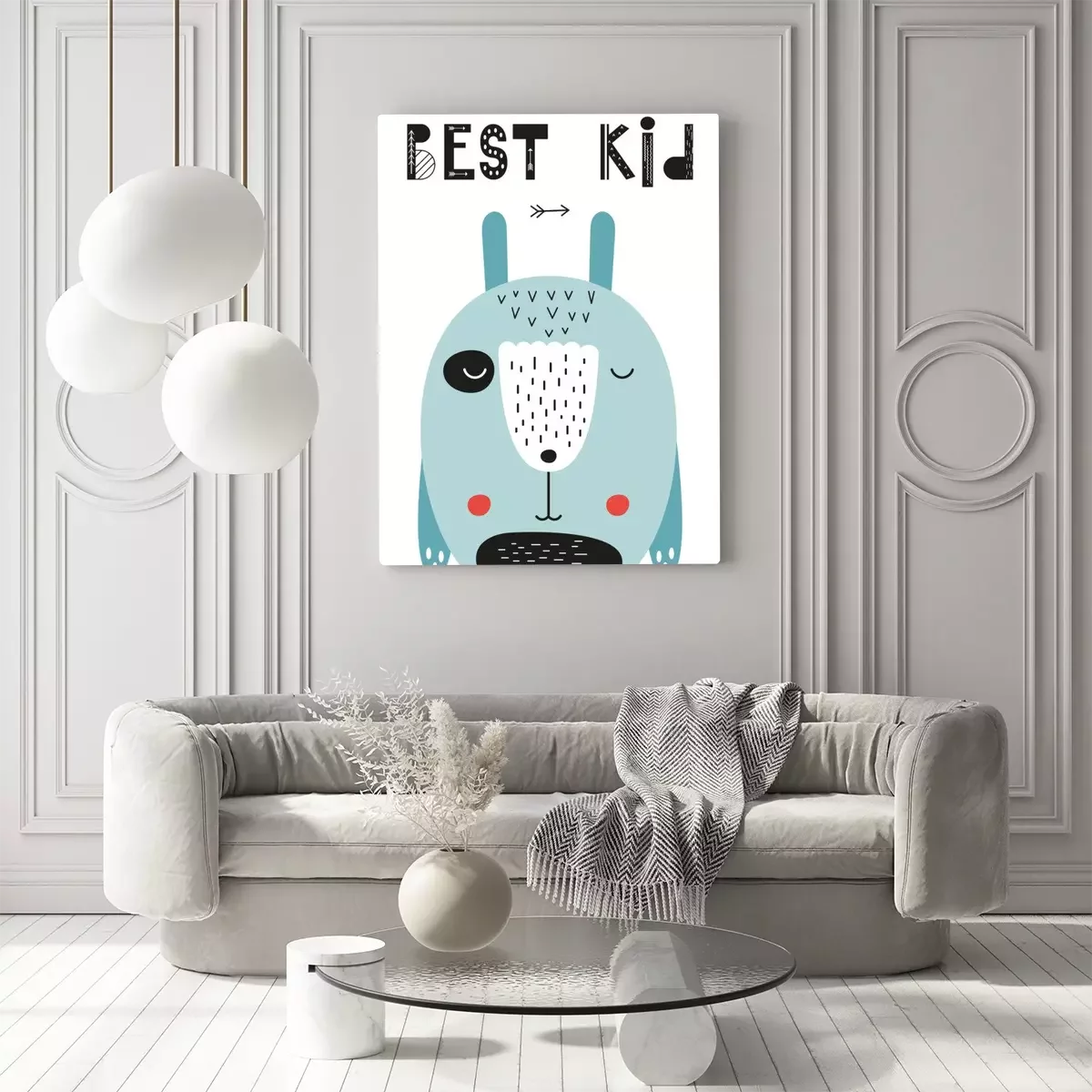 Tableau  Poster for nursery scandi design with cute hare and text Best kid in Scandinavian style. Vector Illustration. Kids illustration for baby clothes, greeting card, wrapping paper.