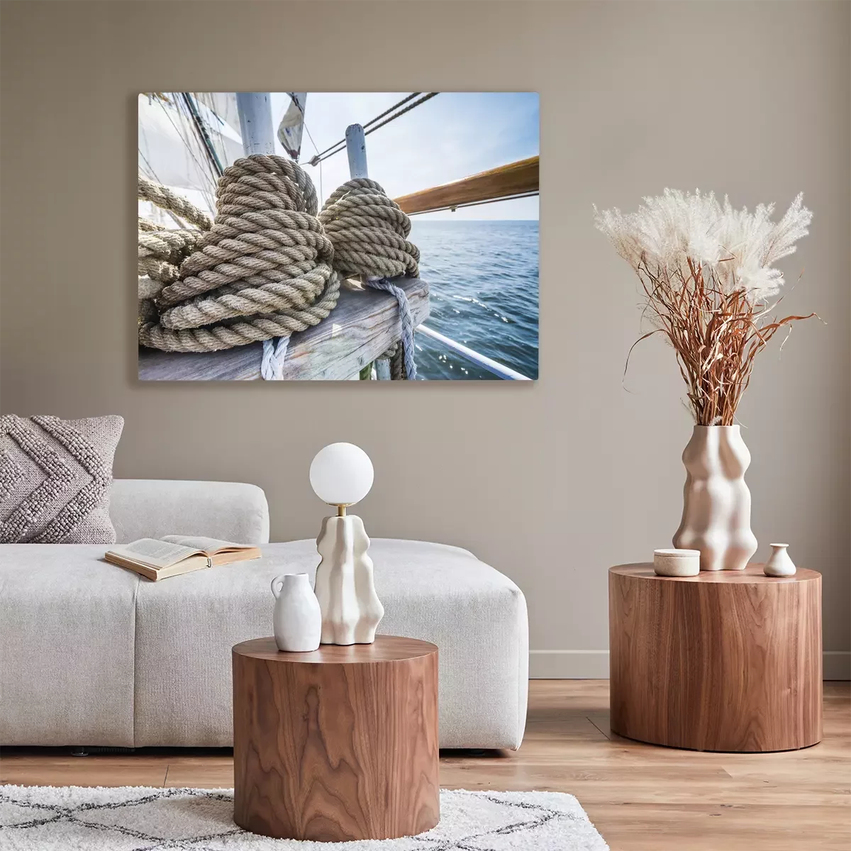 Tableau  Poulie et cordes de bois sur le vieux yacht.