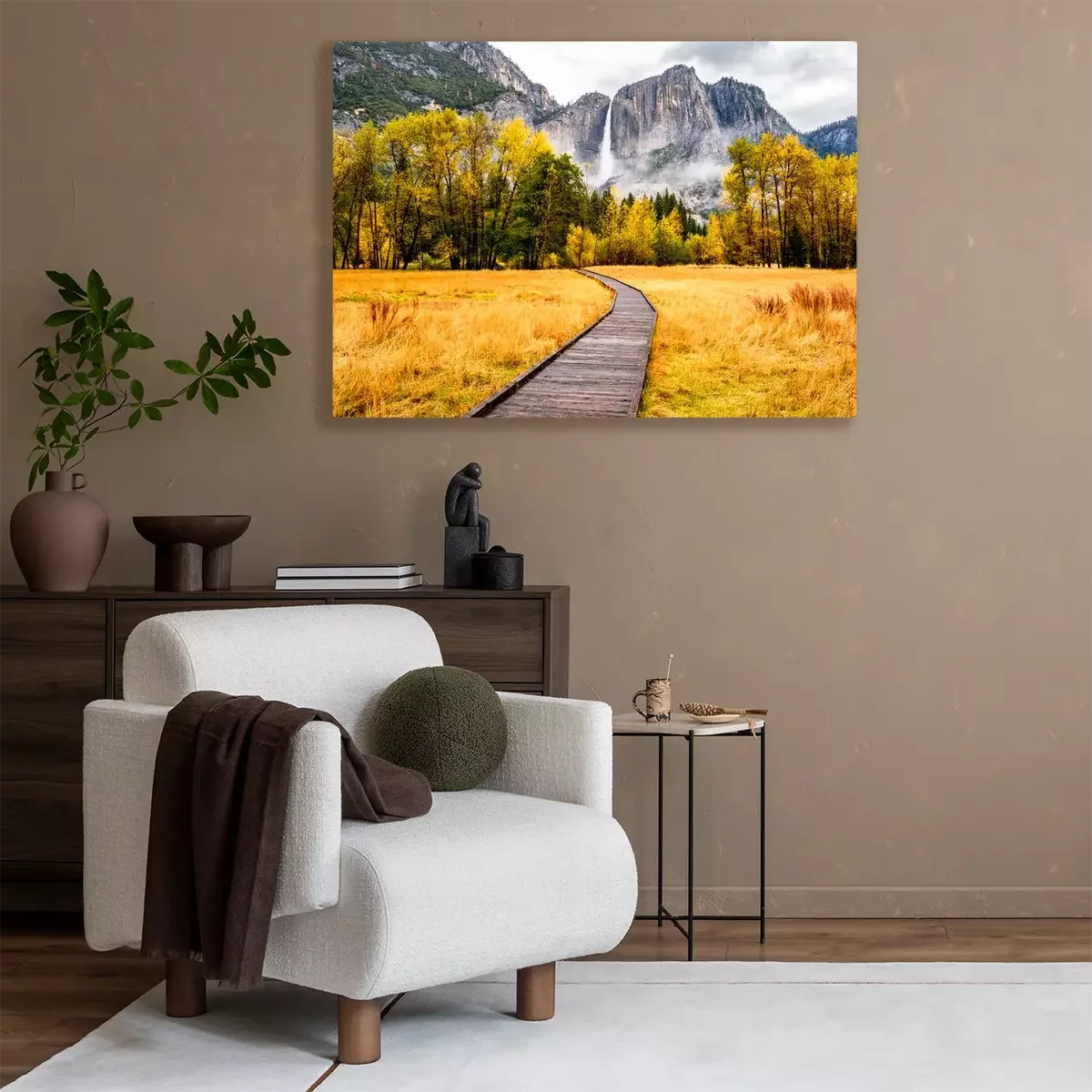 Tableau  Prairie avec promenade dans la vallée du parc national de Yosemite à l'automne