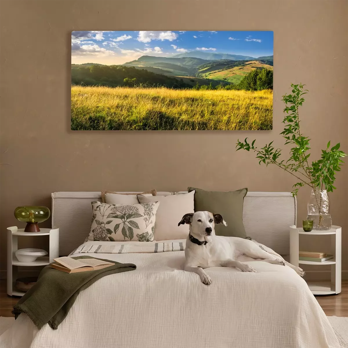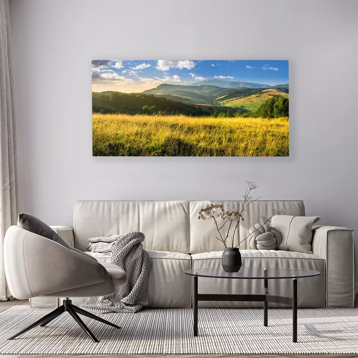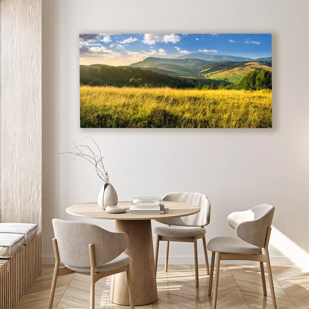 Tableau  prairie d'herbes hautes dans les montagnes au lever du soleil