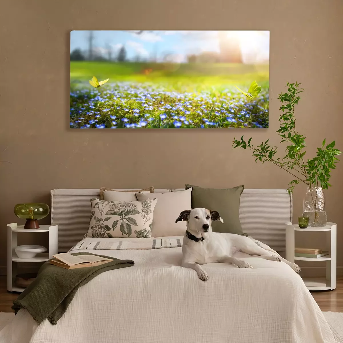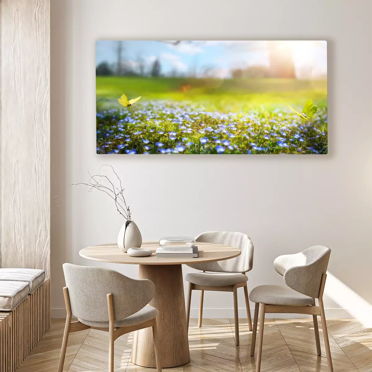 Tableau  Printemps nature abstrait; fleur de printemps et papillon