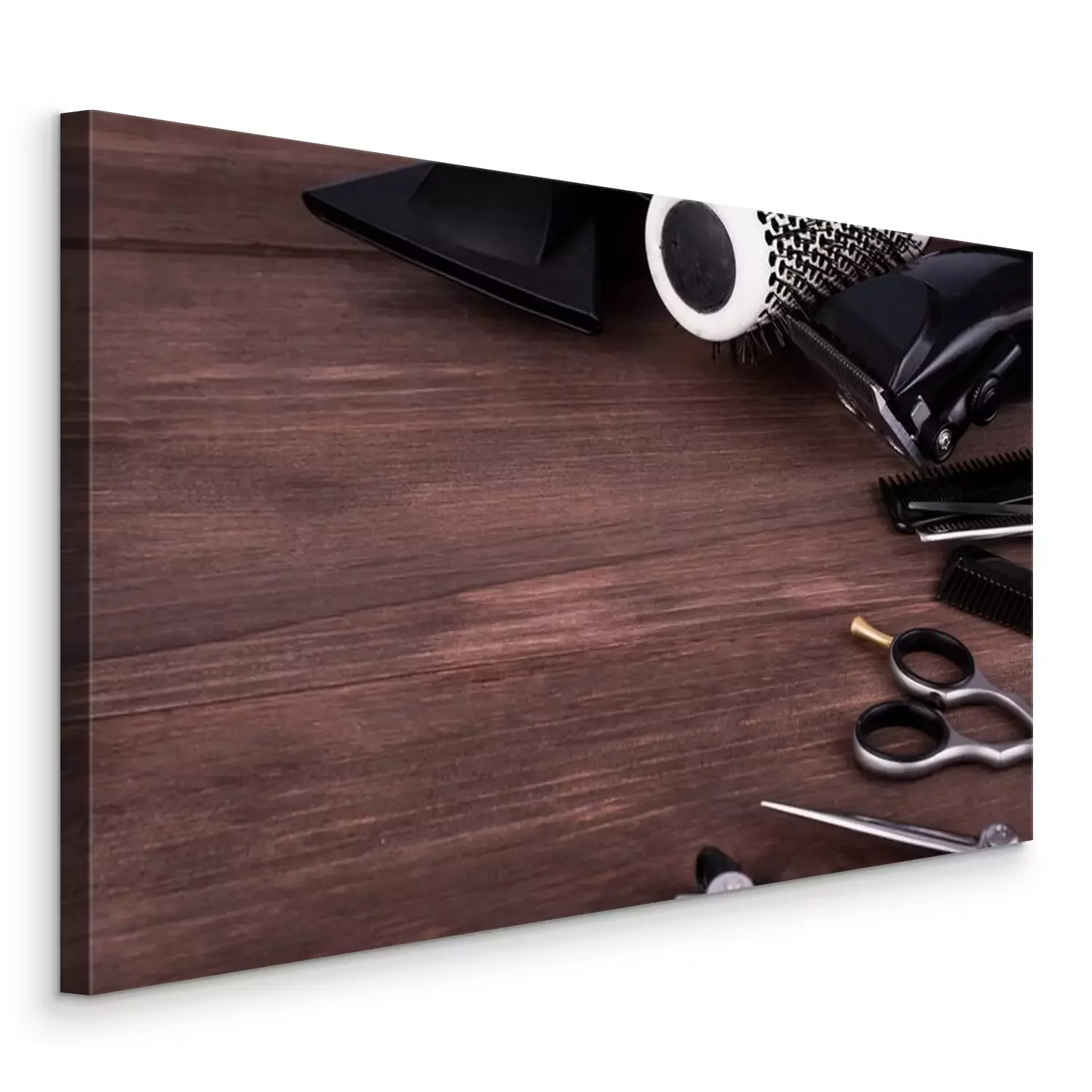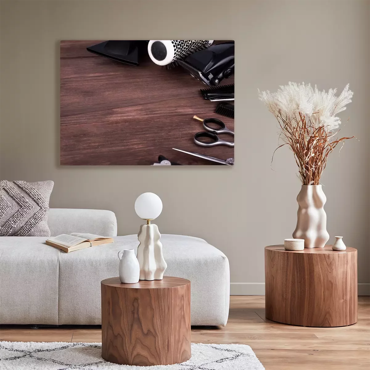 Tableau  Professionnel, coiffure, équipement, bois, fond Outils pour coiffeur, salon de beauté.