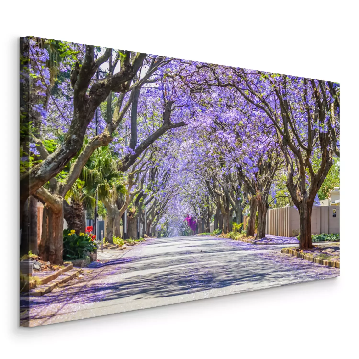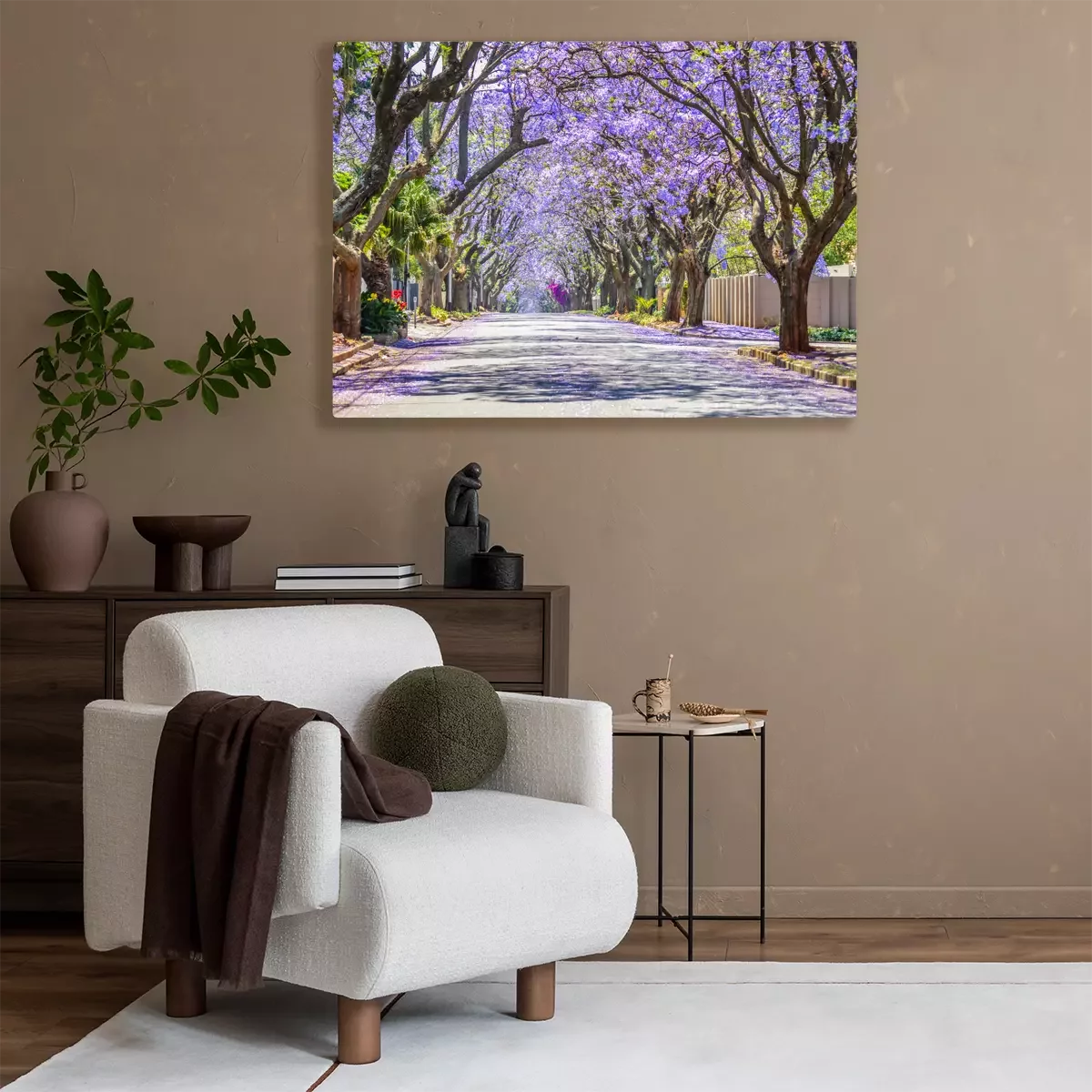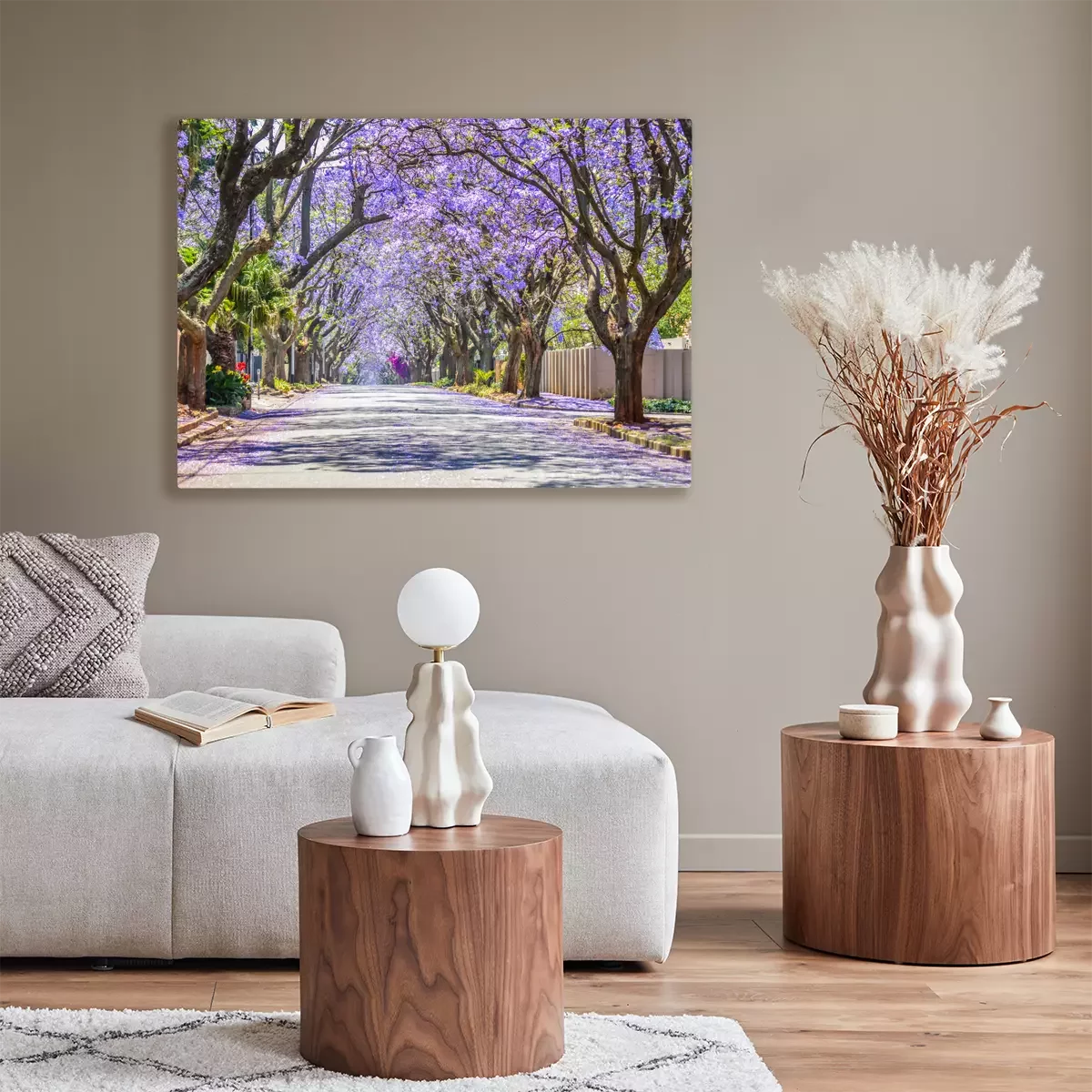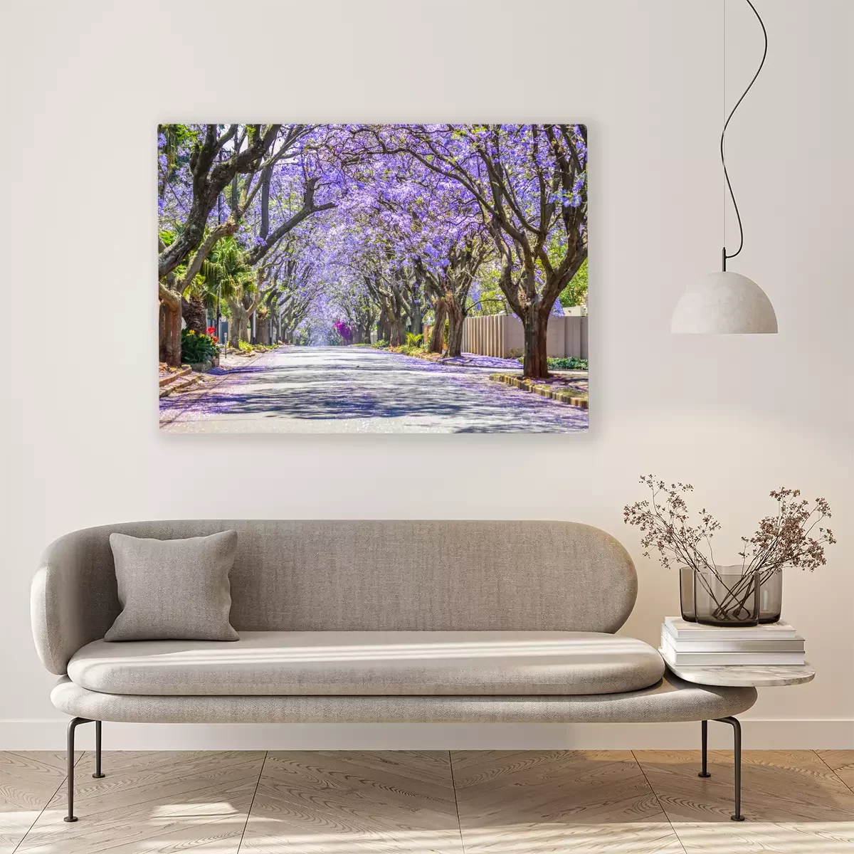 Tableau  Purple blue Jacaranda mimosifolia bloom in Johannesburg and Pretoria street during spring in October in South Africa