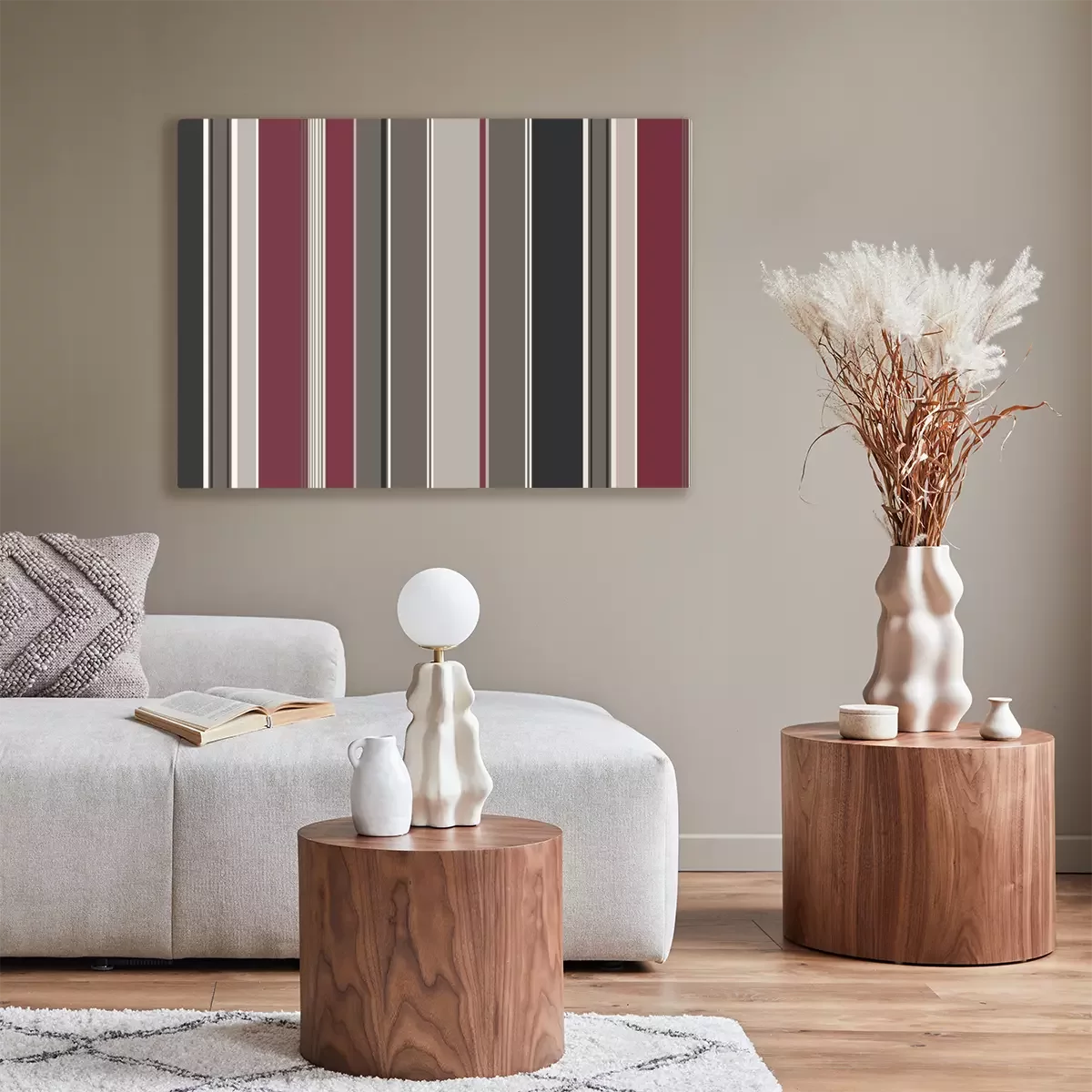 Tableau  rayures bayadères anthracite amarante beige (CS5)