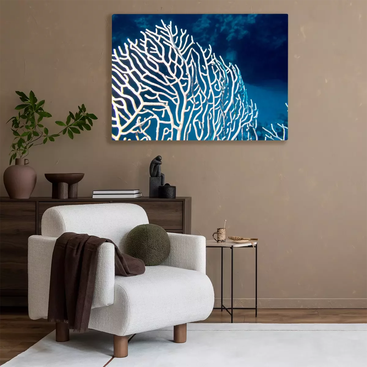 Tableau : Récif corallien à la gorgone au fond d'une mer tropicale