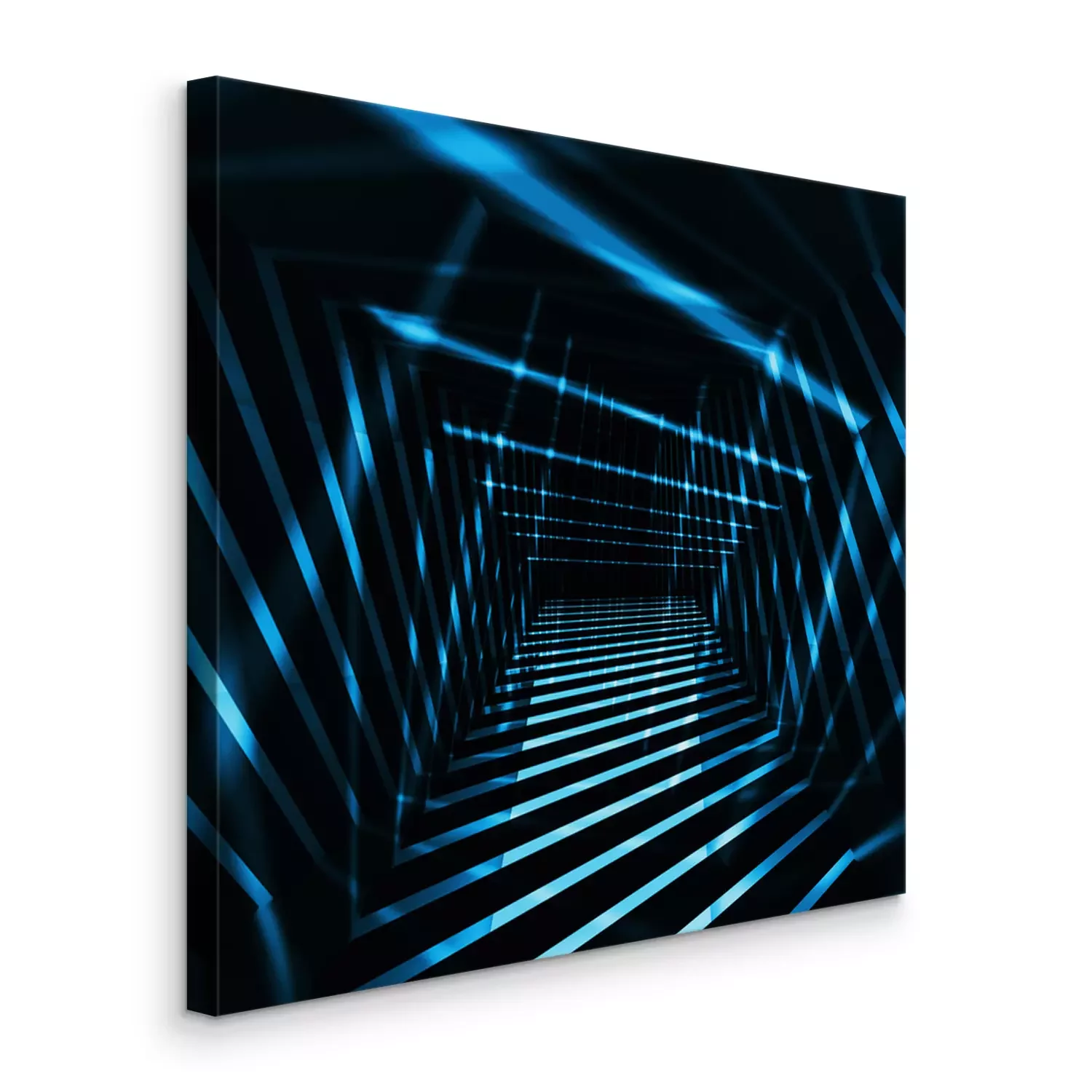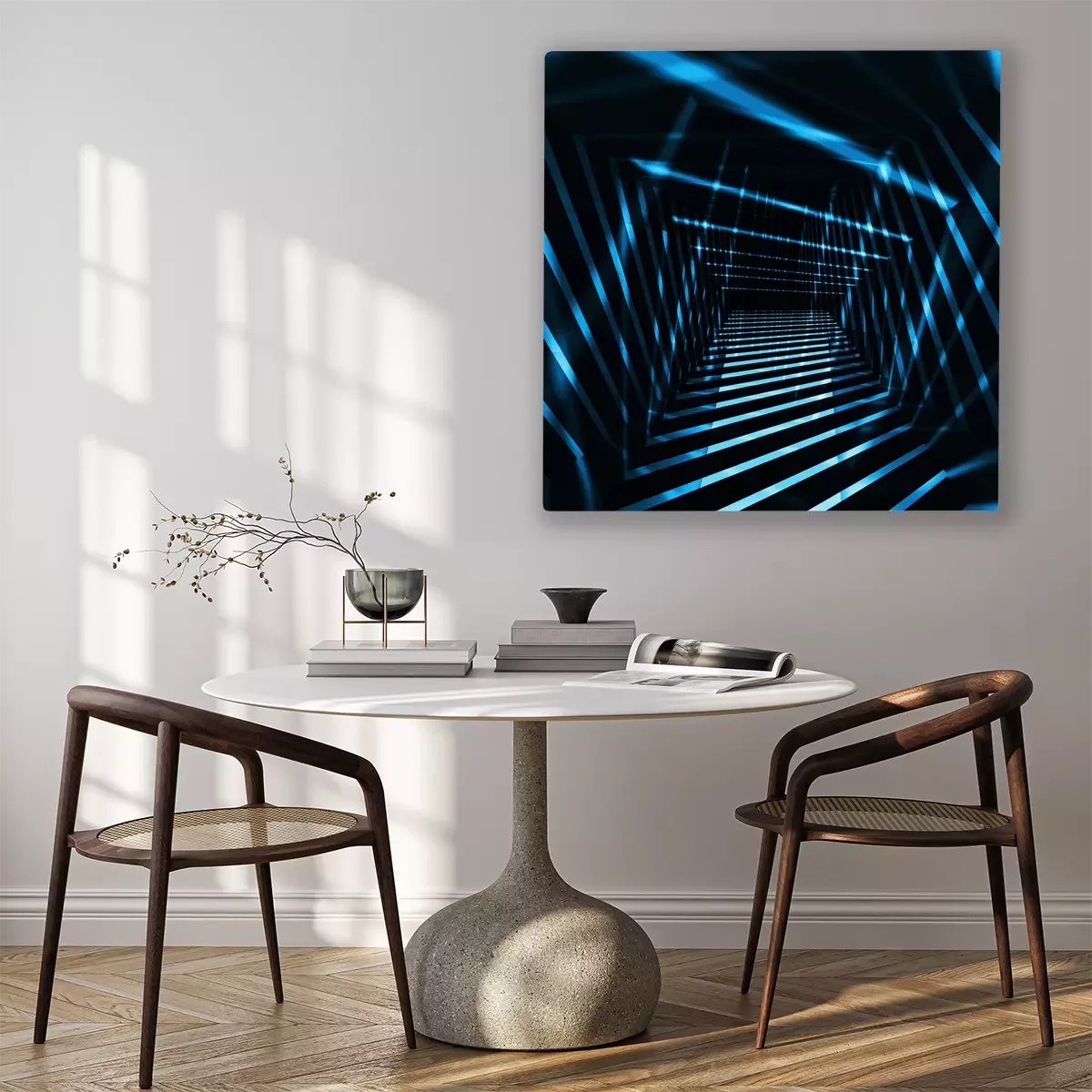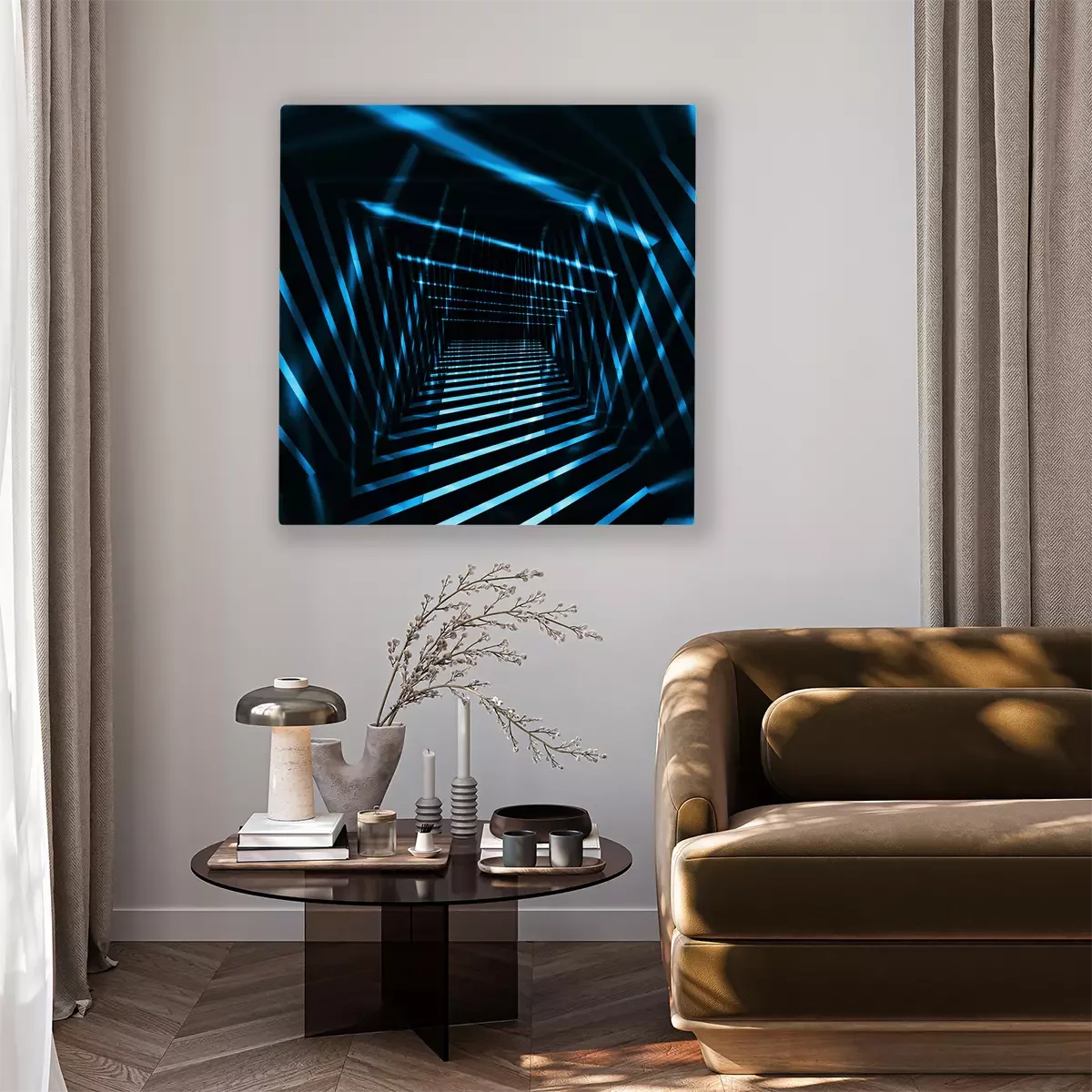 Tableau  Résumé de fond d'intérieur 3D foncé avec des faisceaux de lumière de nuit bleu