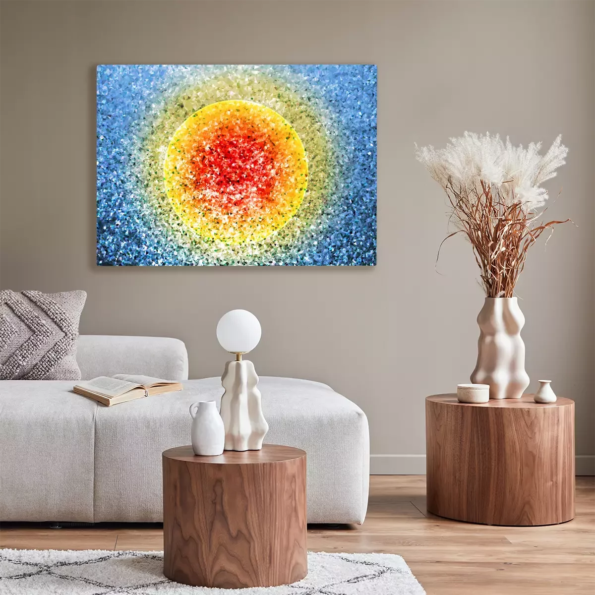 Tableau : Résumé de fond de cristaux avec soleil stylisé