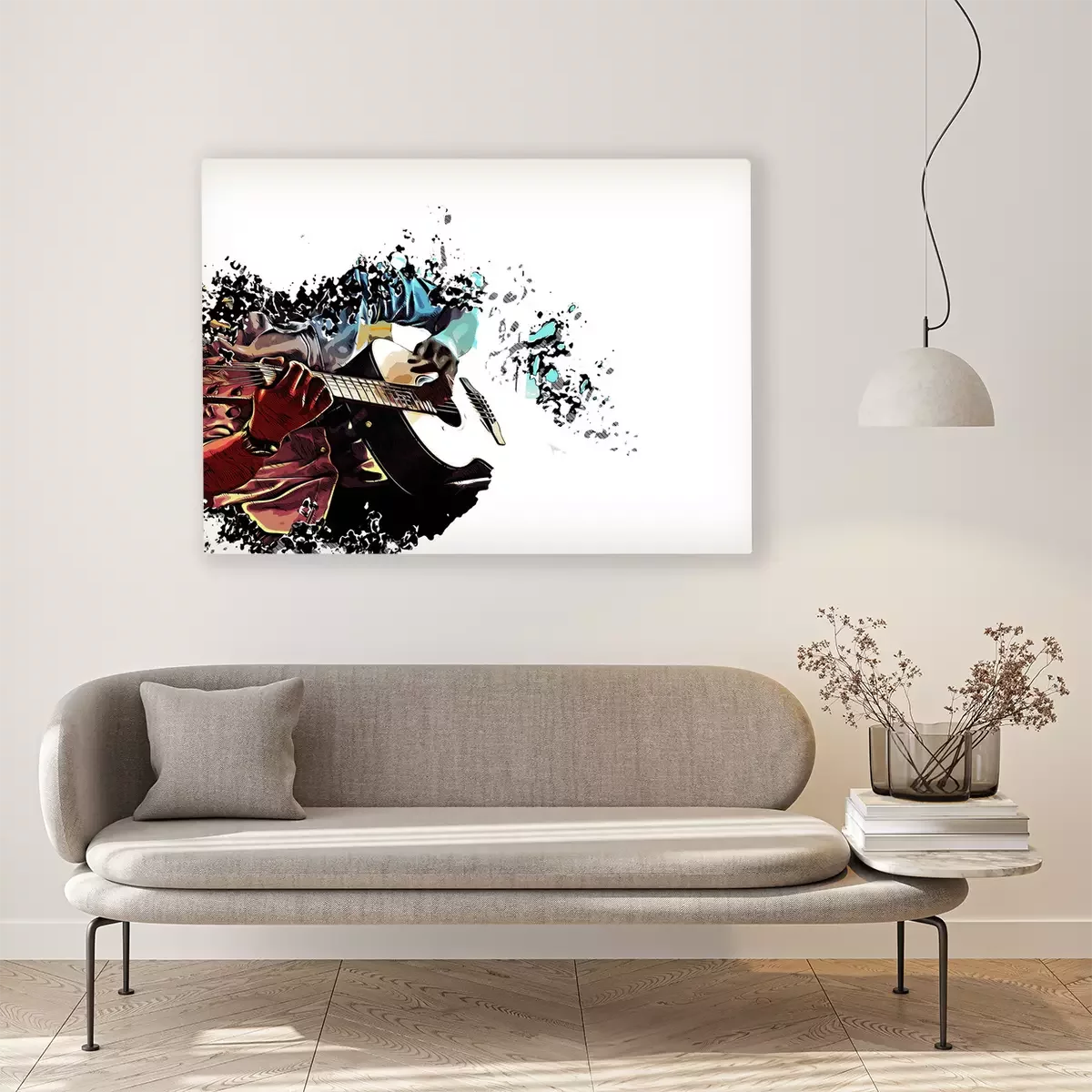Tableau  Résumé Guitariste au premier plan. Gros plan, Aquarelle