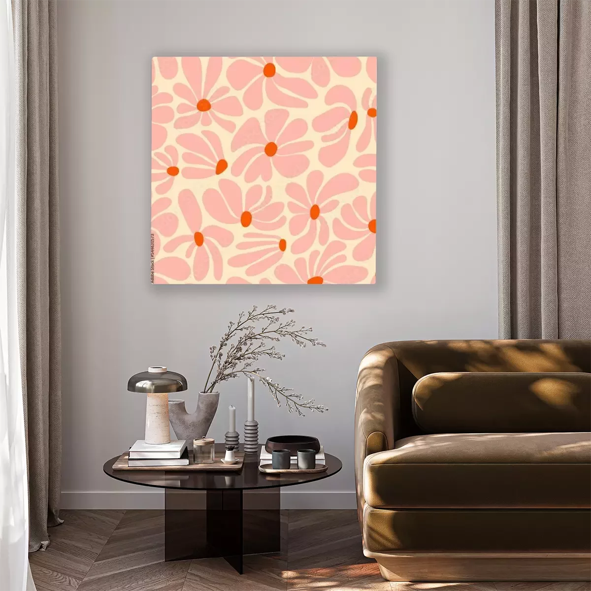 Tableau  Retro groovy flower power background. Vintage 1970s floral seamless pattern. Hippie fun wallpaper. 1960s vector print for fabric, wrapping paper, stationery