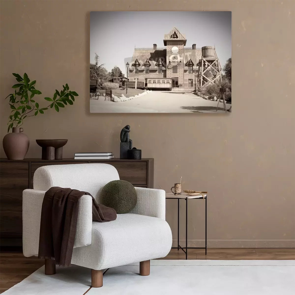 Tableau  Retro photo de la station de chemin de fer dans la ville de Far west
