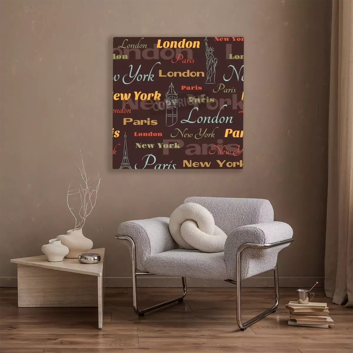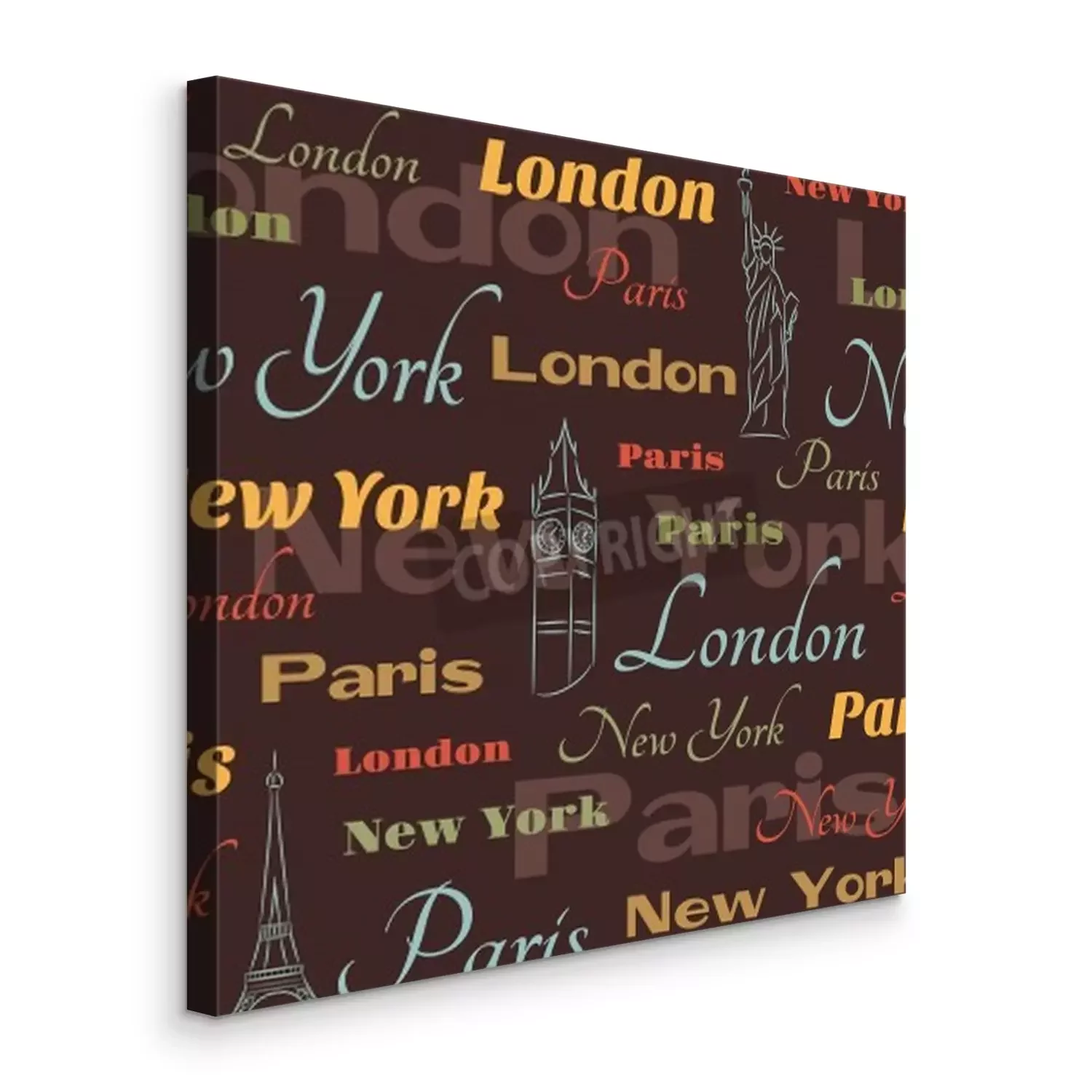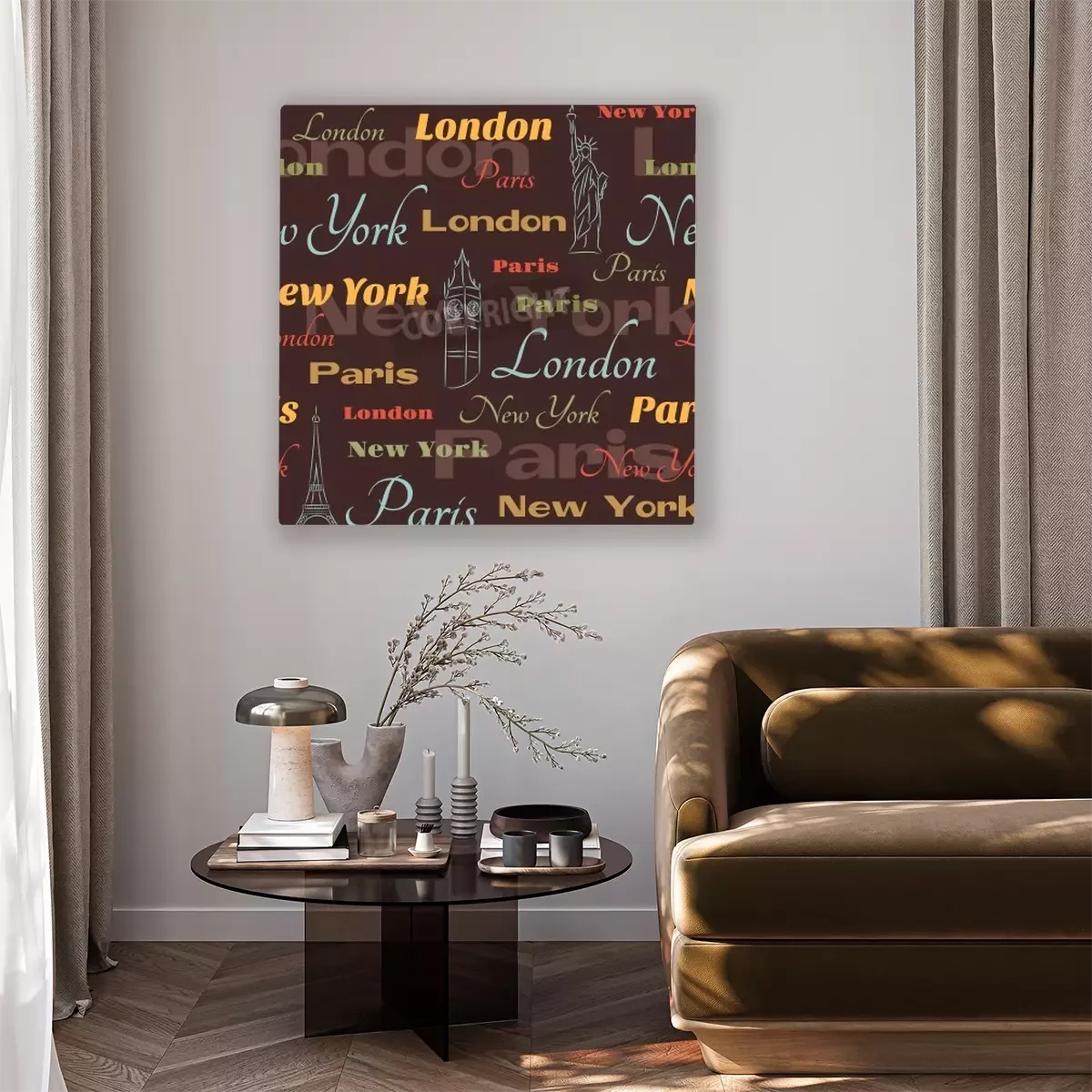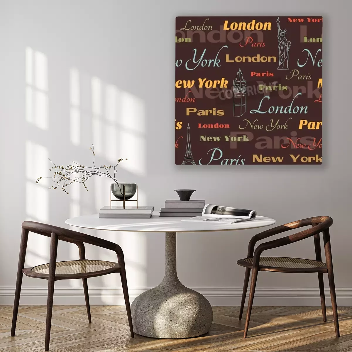 Tableau  Rétro, seamless, ville, noms, nouveau, York, londres, paris, ville, Symboles