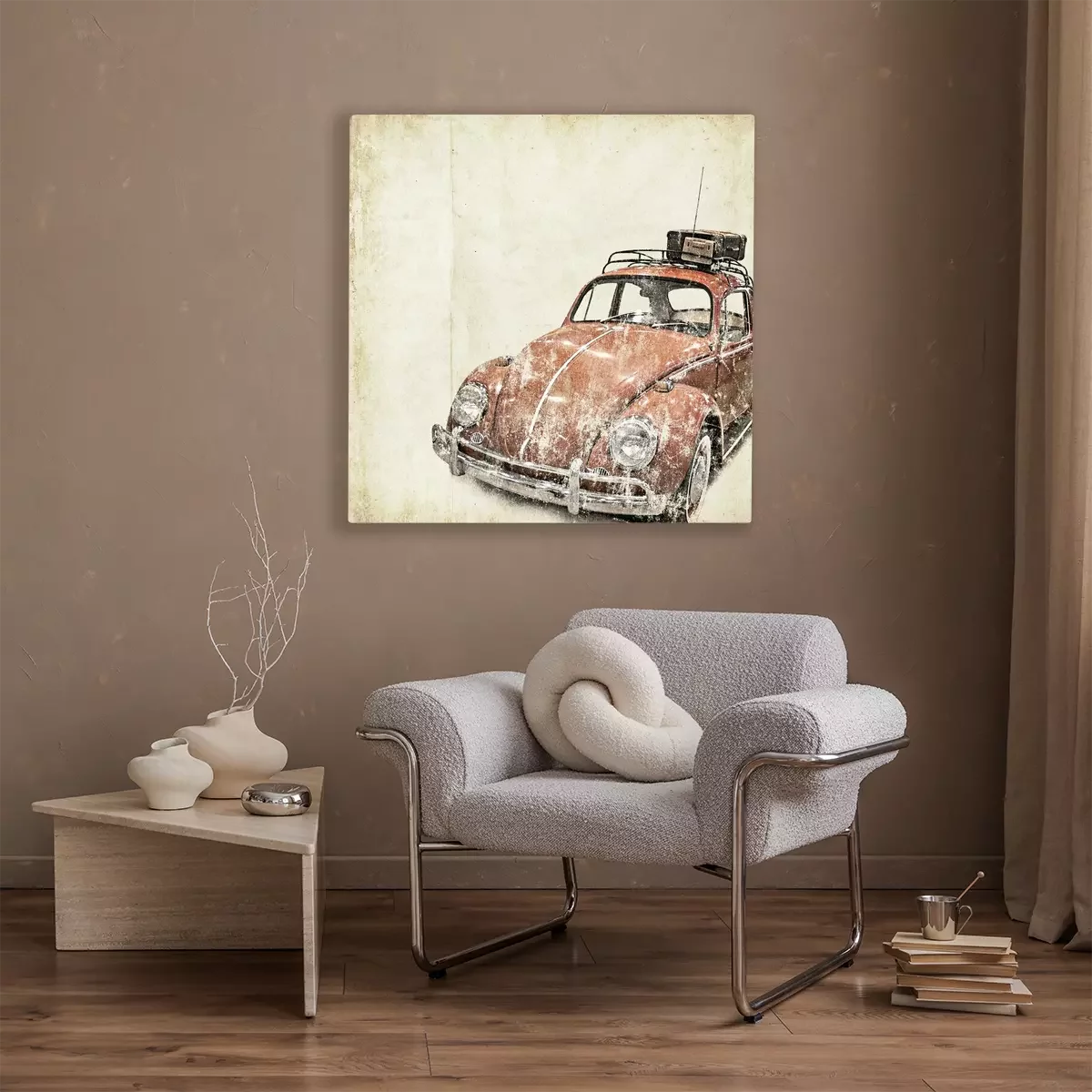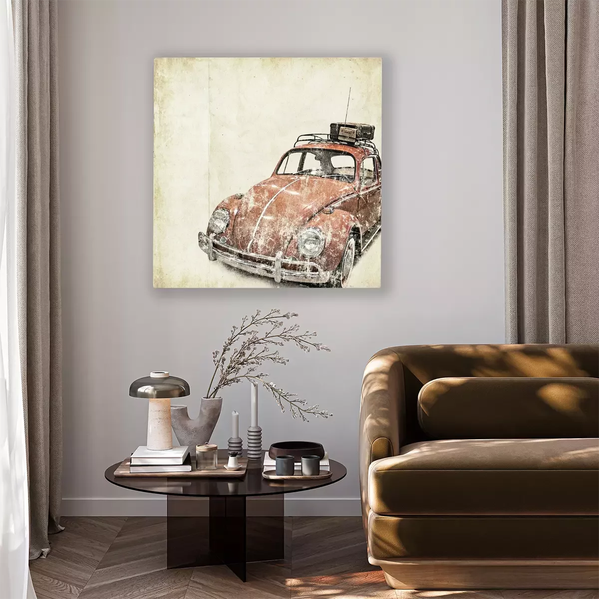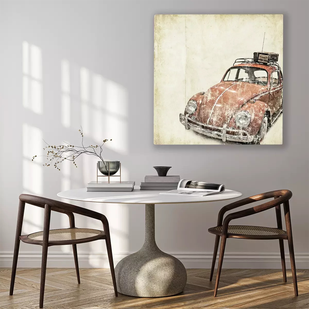 Tableau  Rétro voiture coccinelle bagages sur le toit