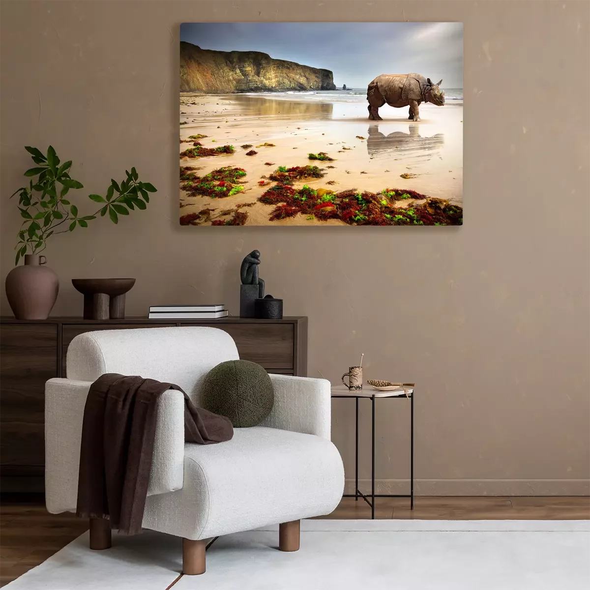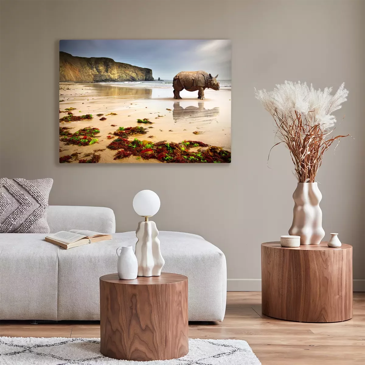 Tableau : Rhinocéros sur la plage
