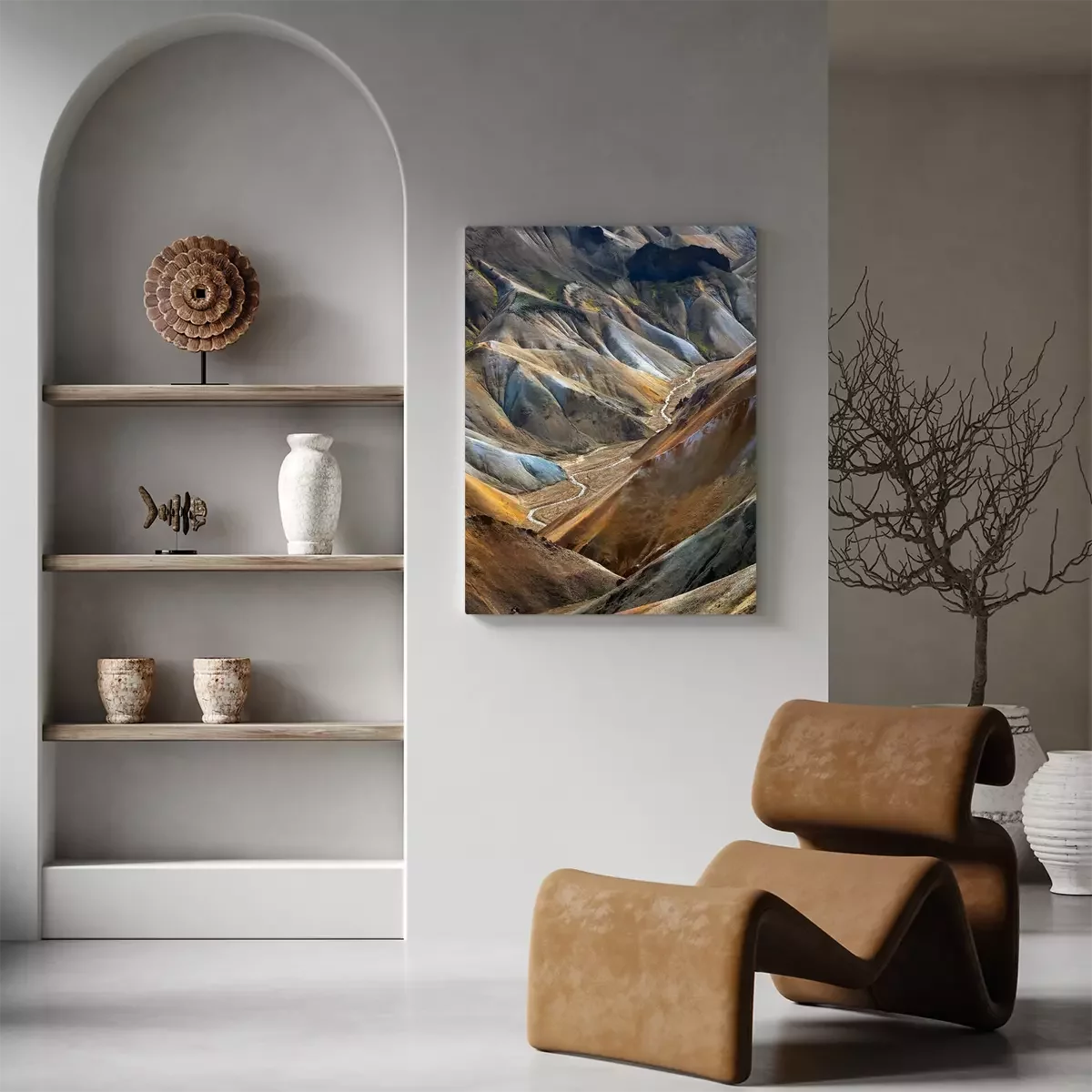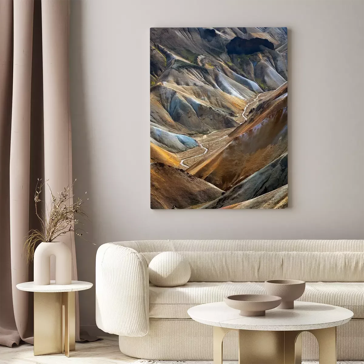 Tableau : River along a Valley in Landmannalaugar among colorful mountains, Iceland