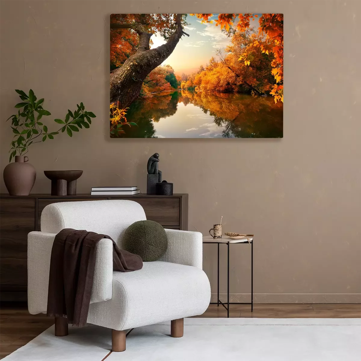 Tableau  Rivière parmi les arbres d’automne dans un paysage naturel