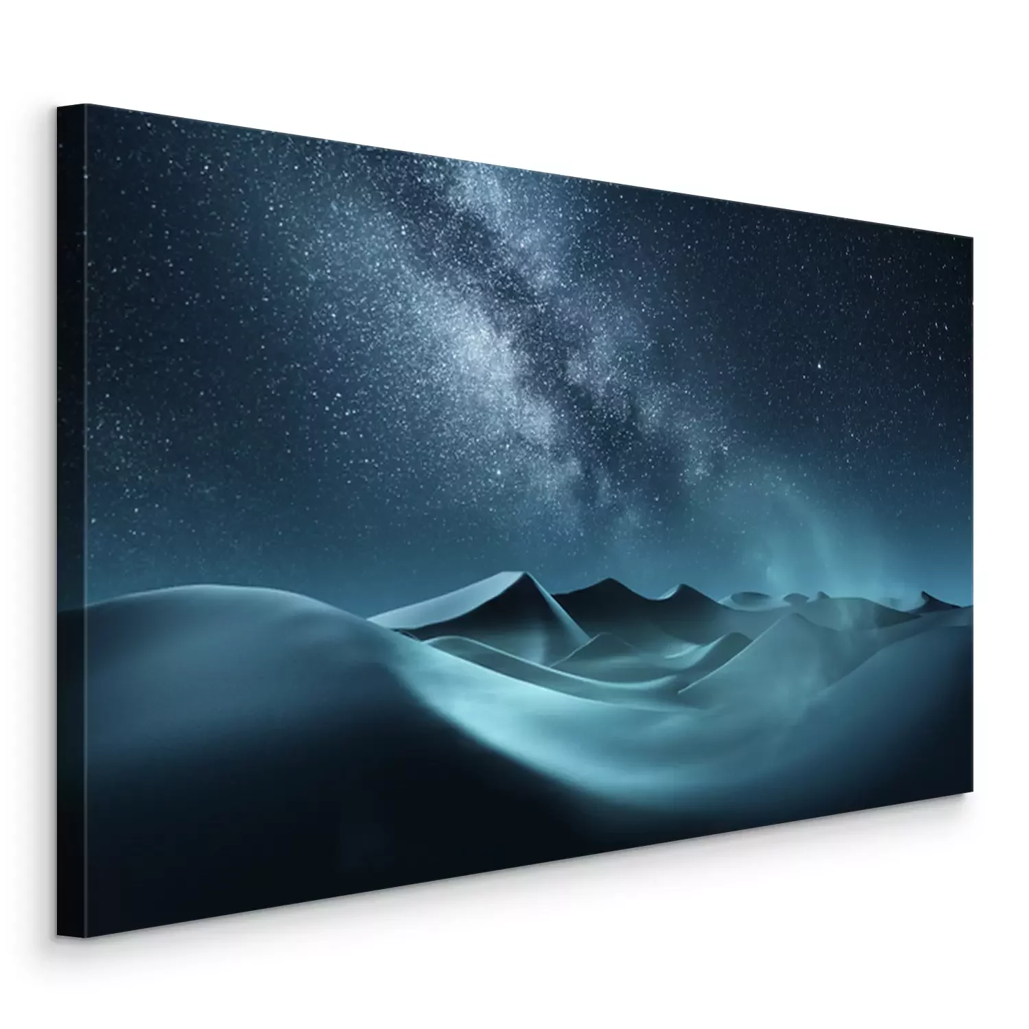 Tableau  Rolling sand dunes at night with the milky way banding across the sky. Mixed media illustration.