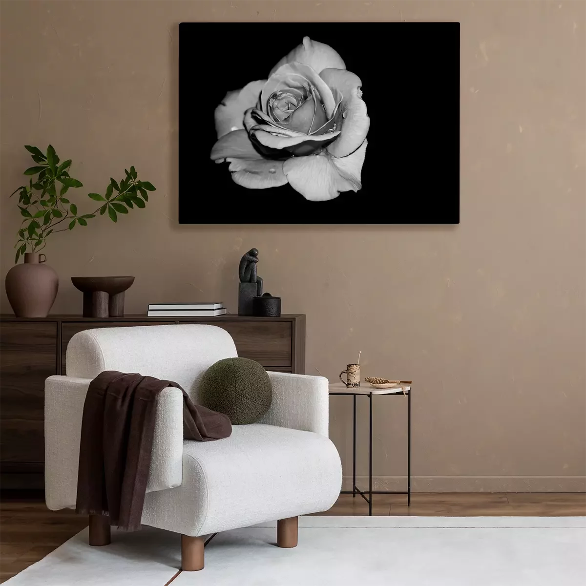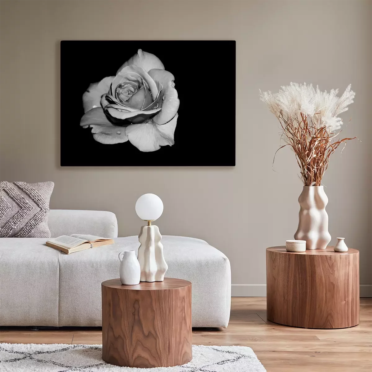 Tableau : rose blanche sur fond noir
