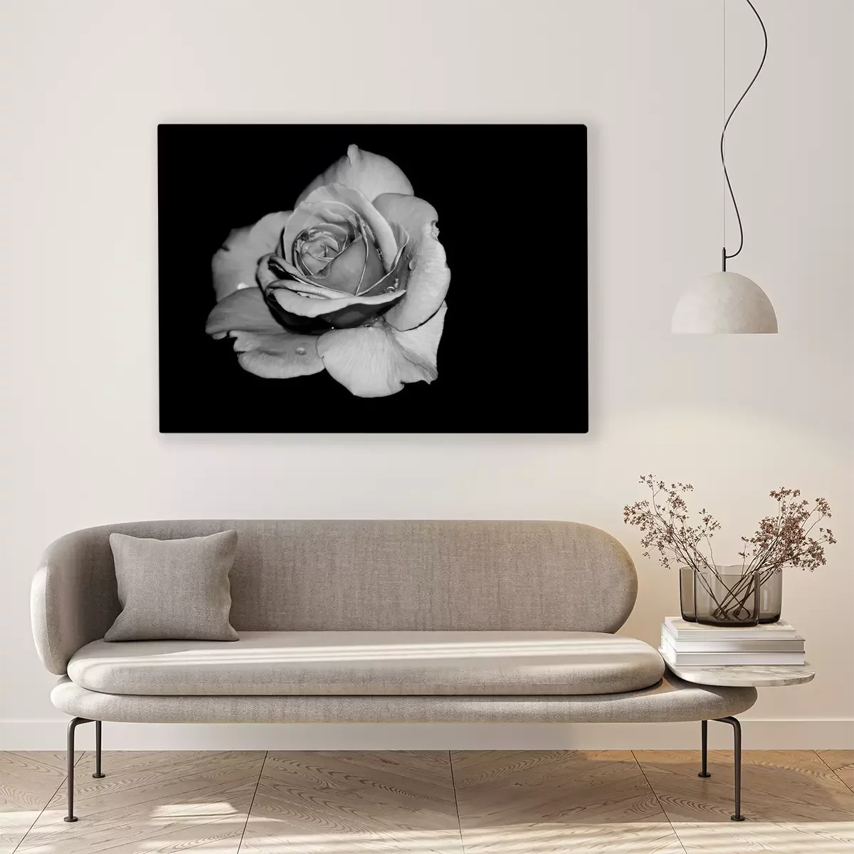 Tableau  rose blanche sur fond noir