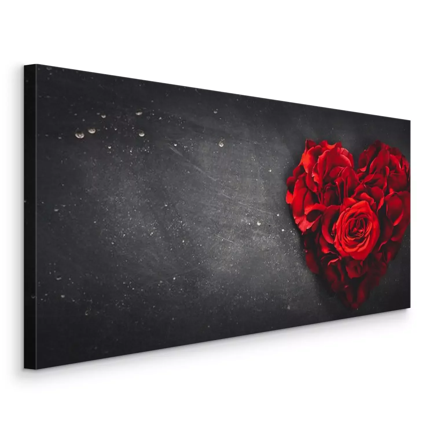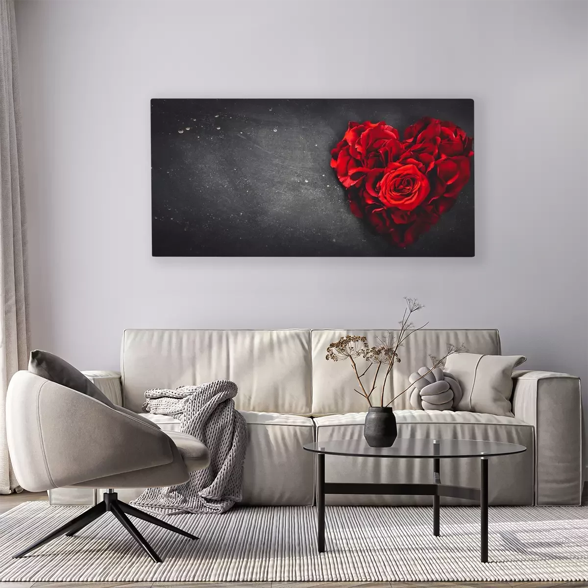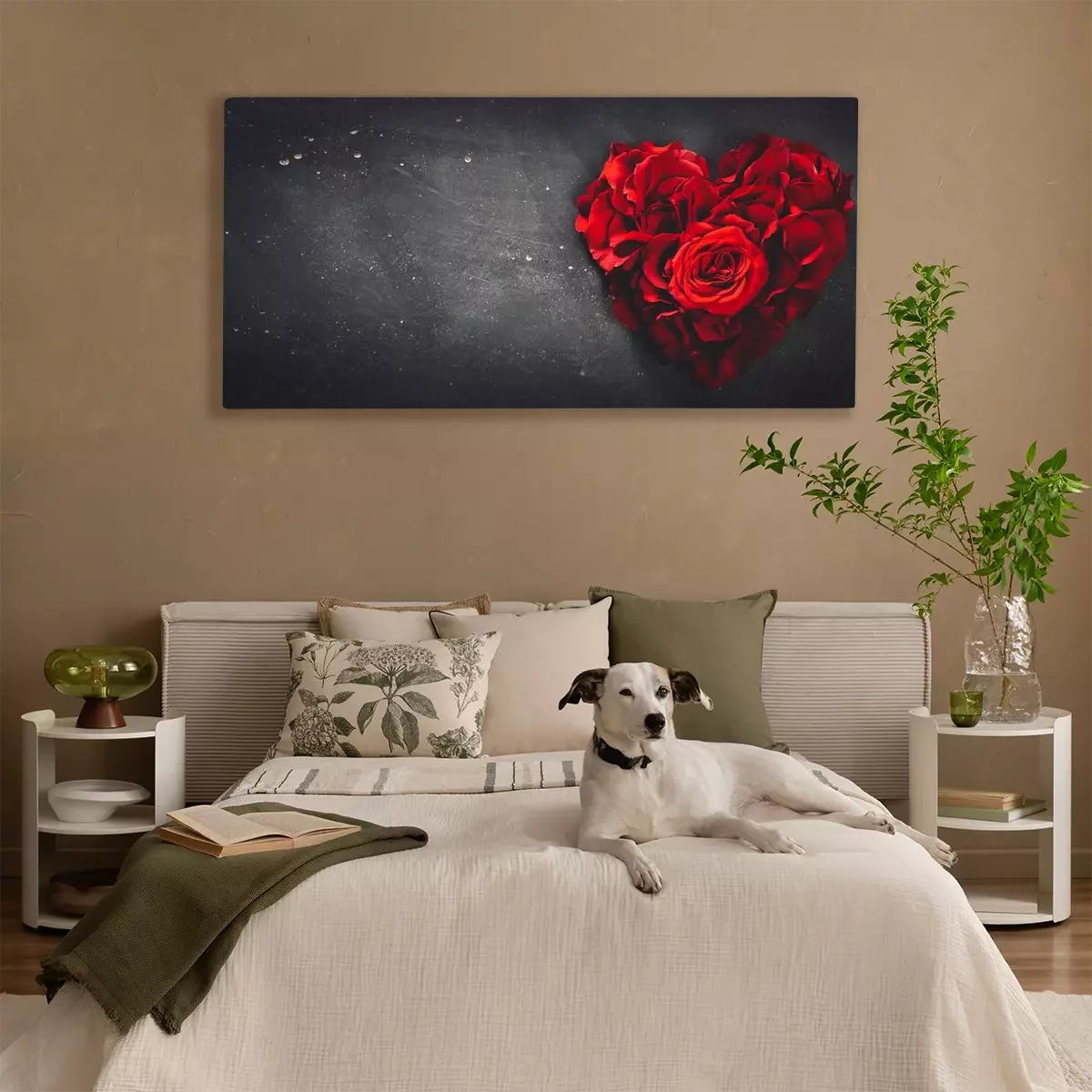 Tableau  Roses rouges en forme de coeur sur fond de pierre.