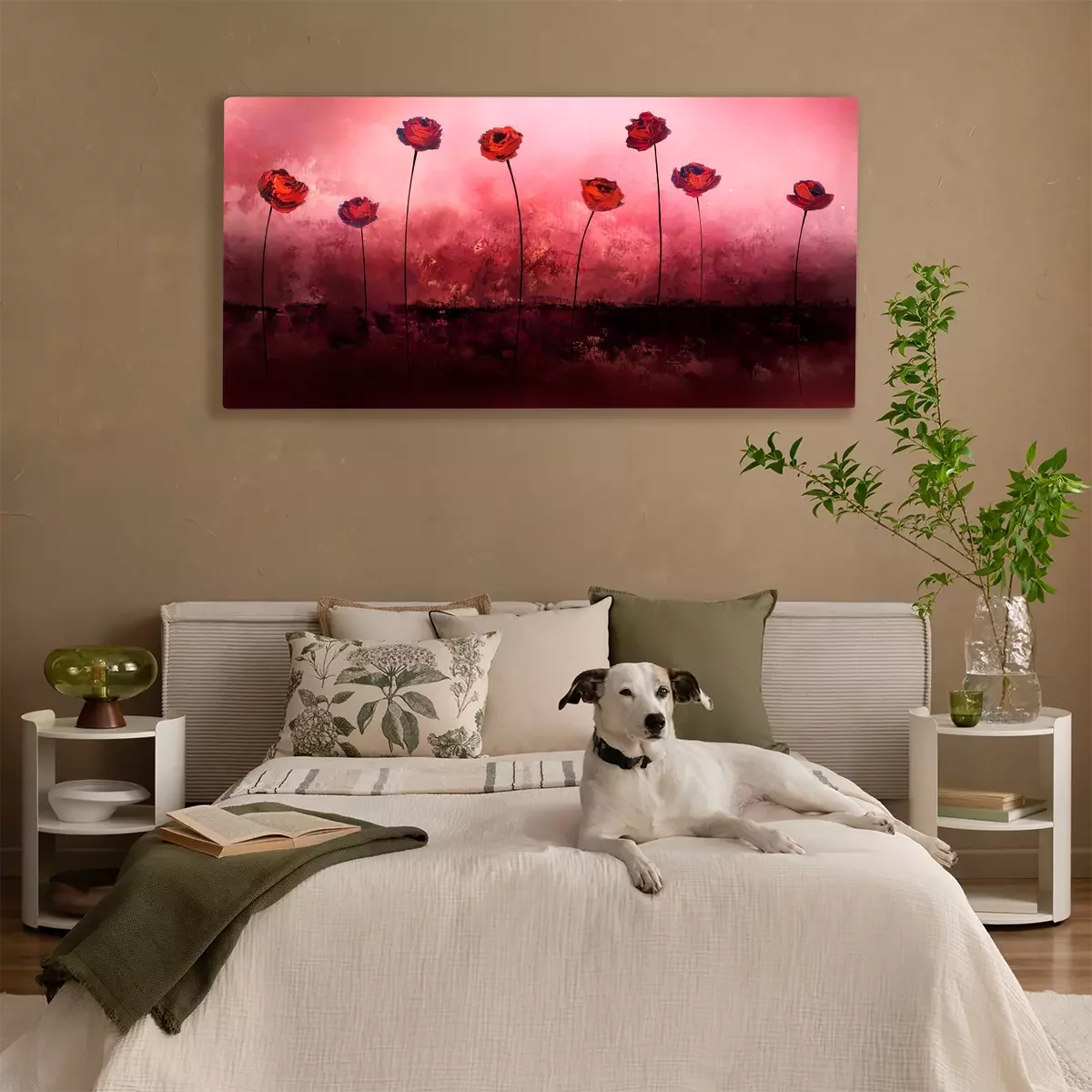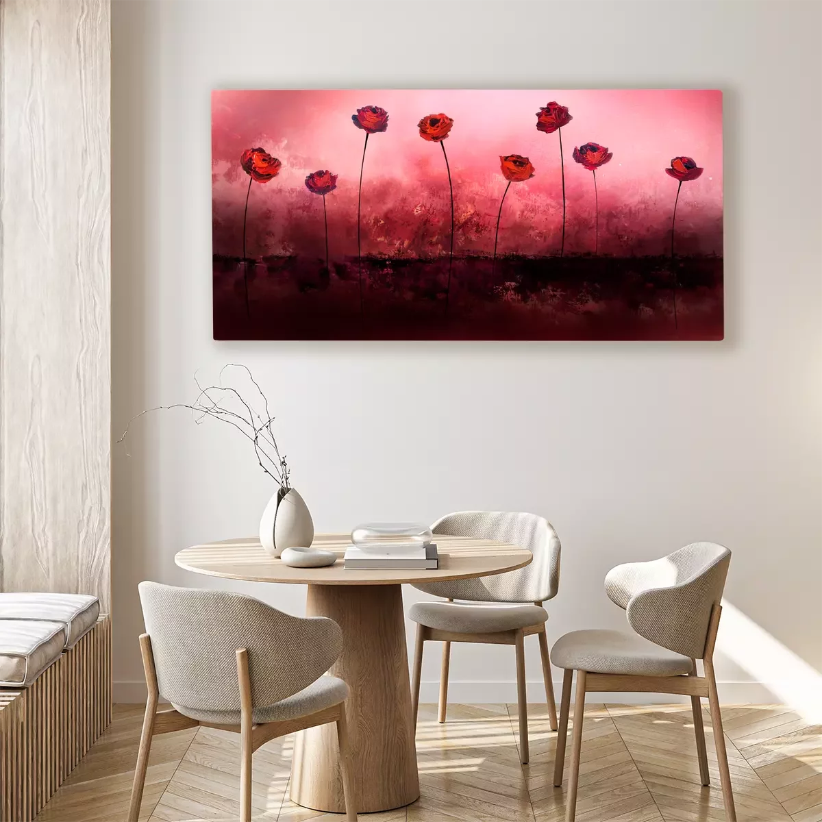 Roses rouges sur fond rose-rouge