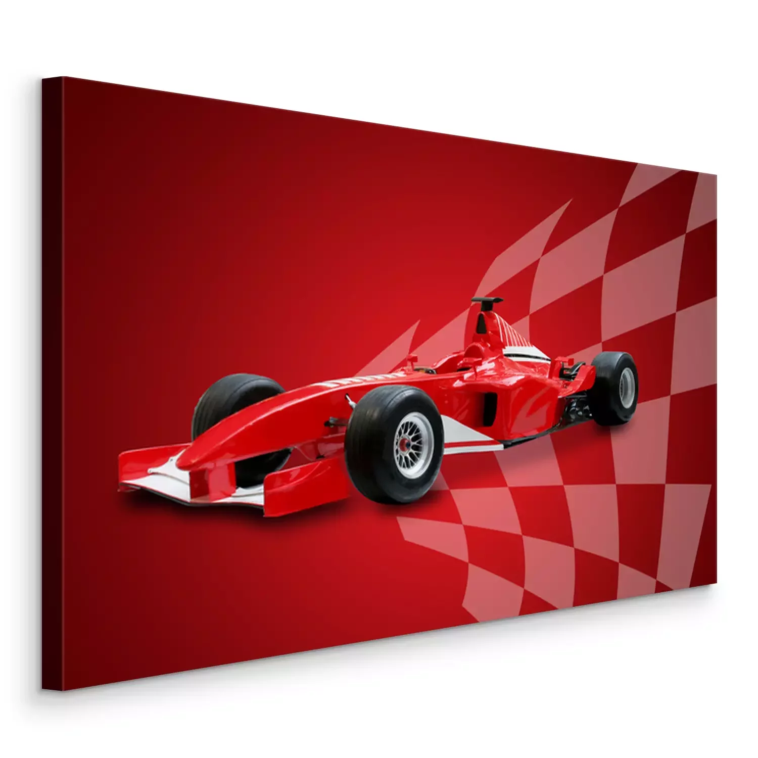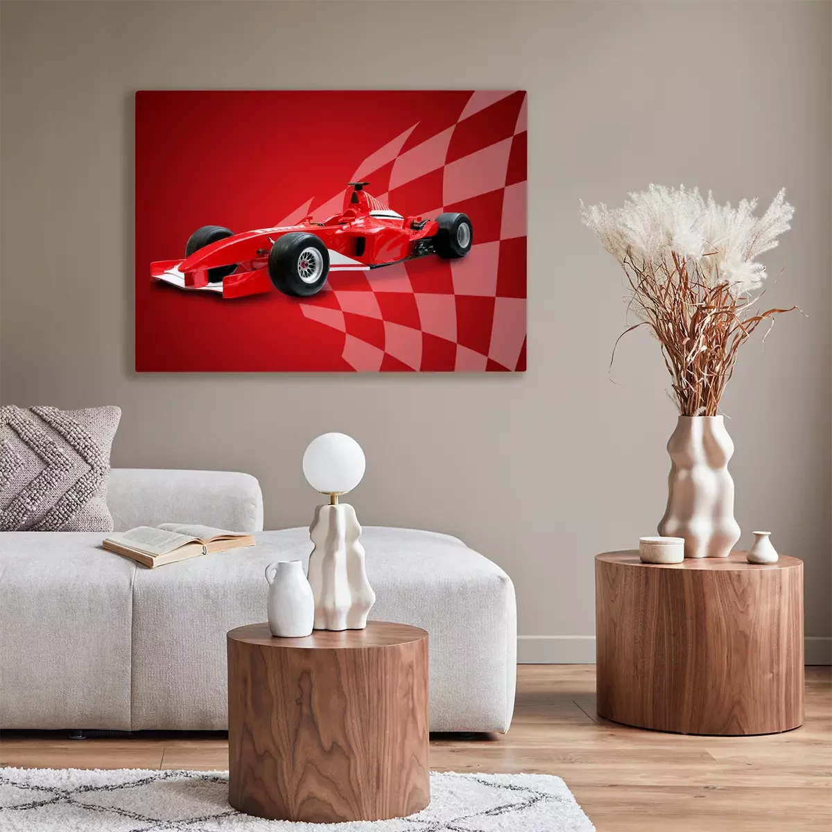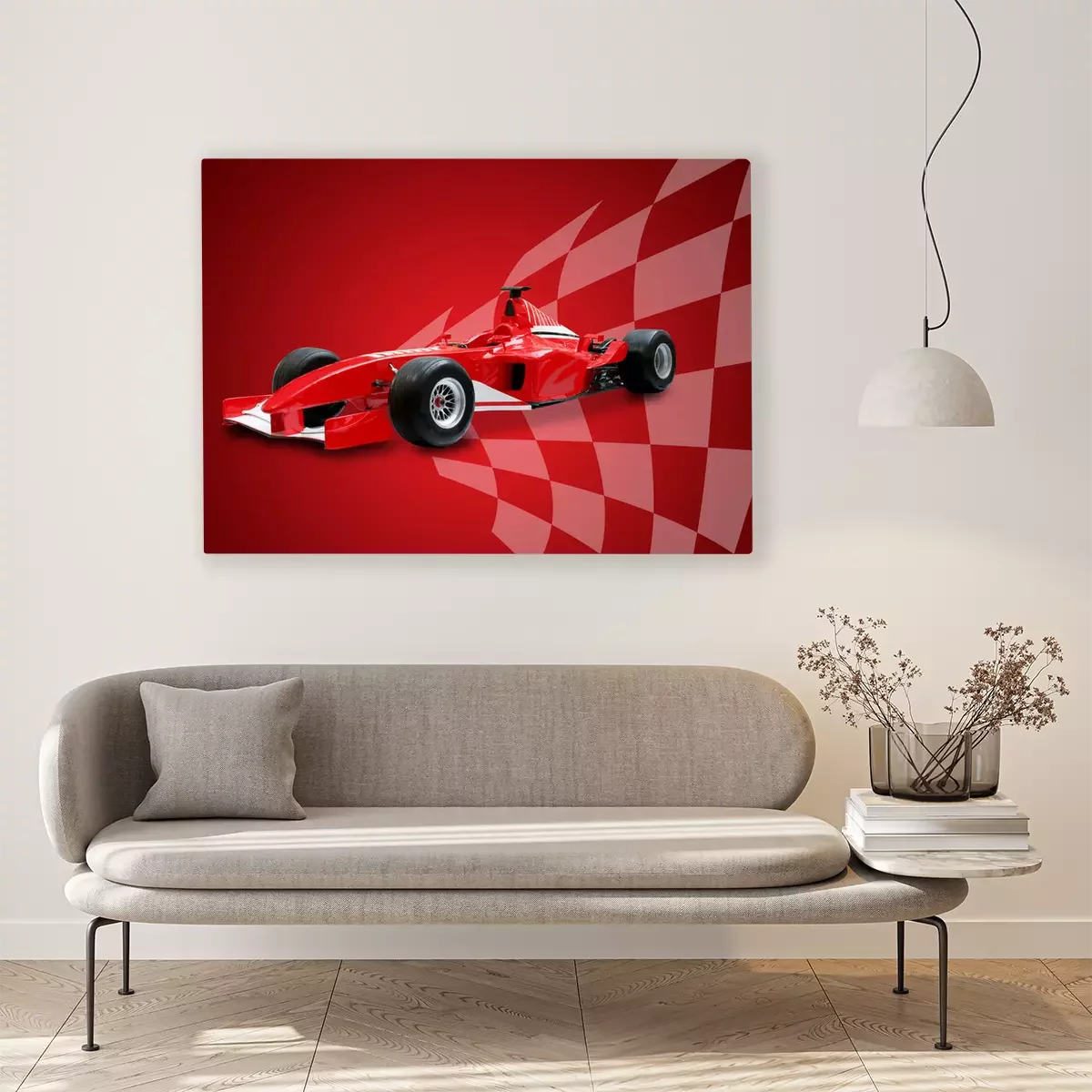 Tableau  rouge voiture de Formule Un et le drapeau de course