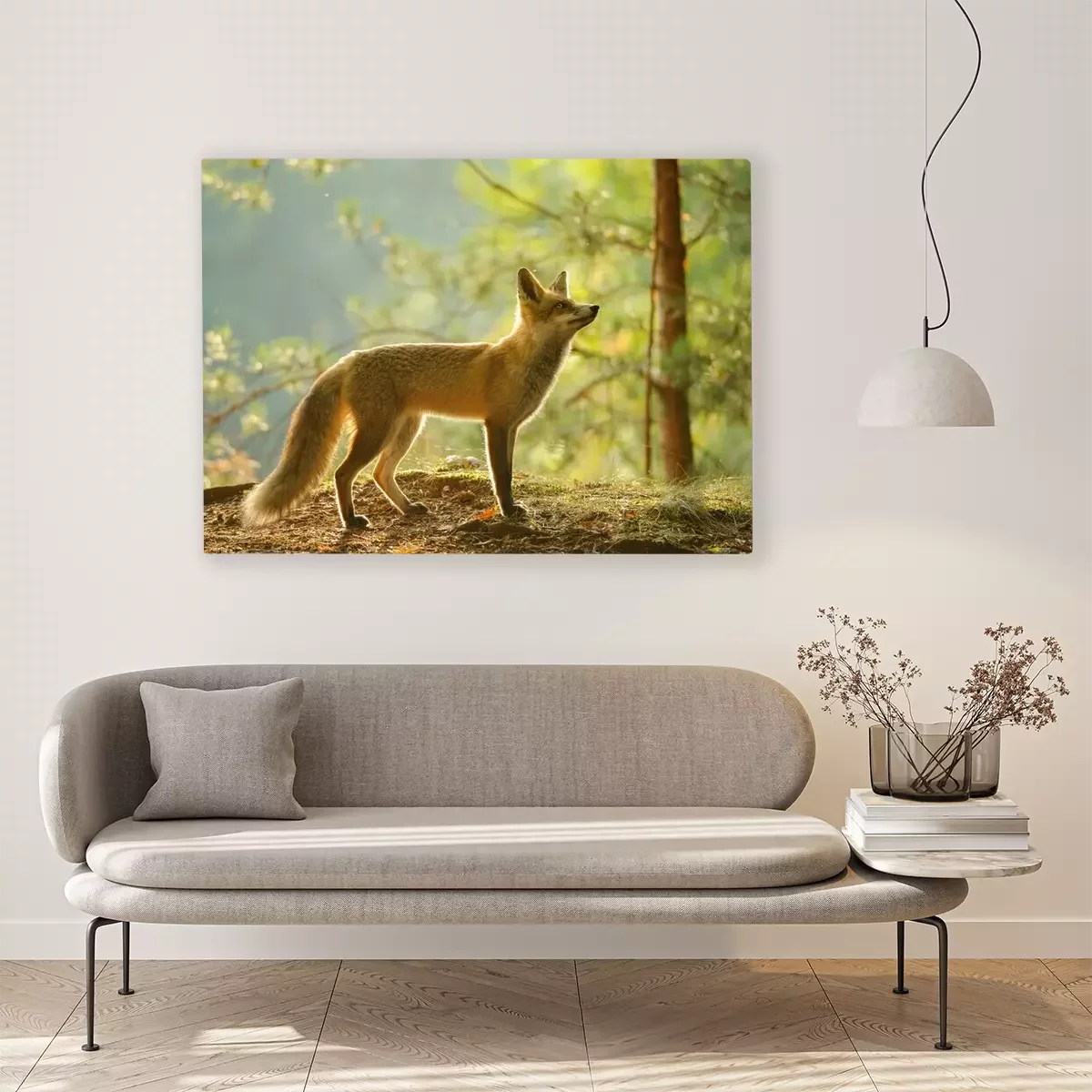 Tableau  Rouges, renard, côté, vue, beauté, rétroéclairage, automne, forêt