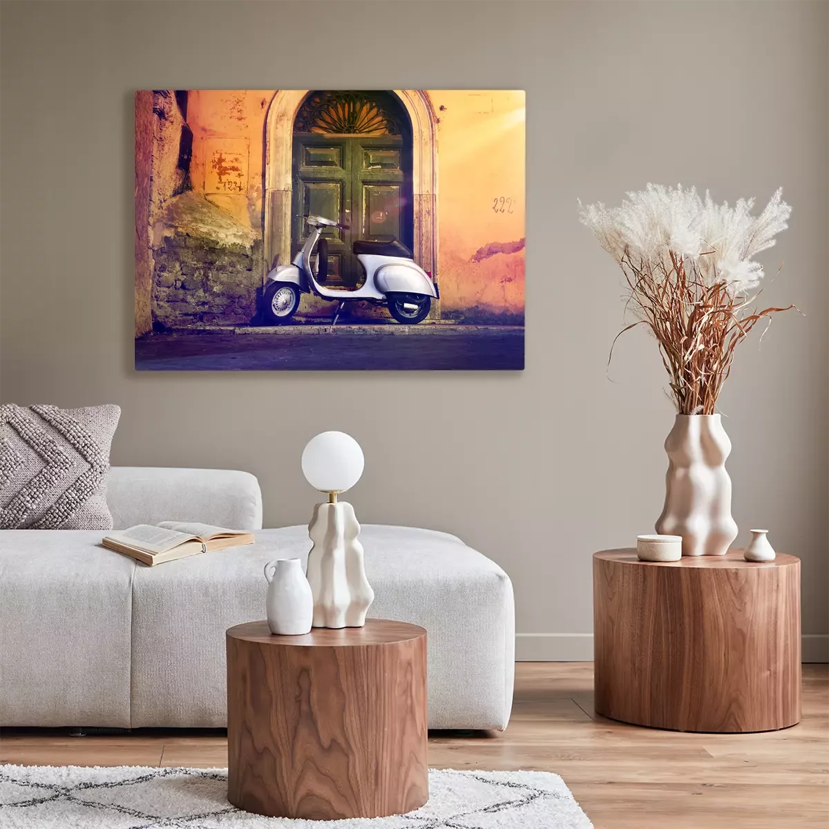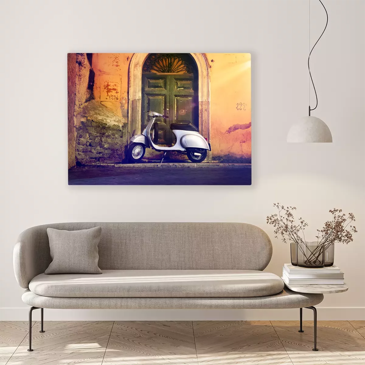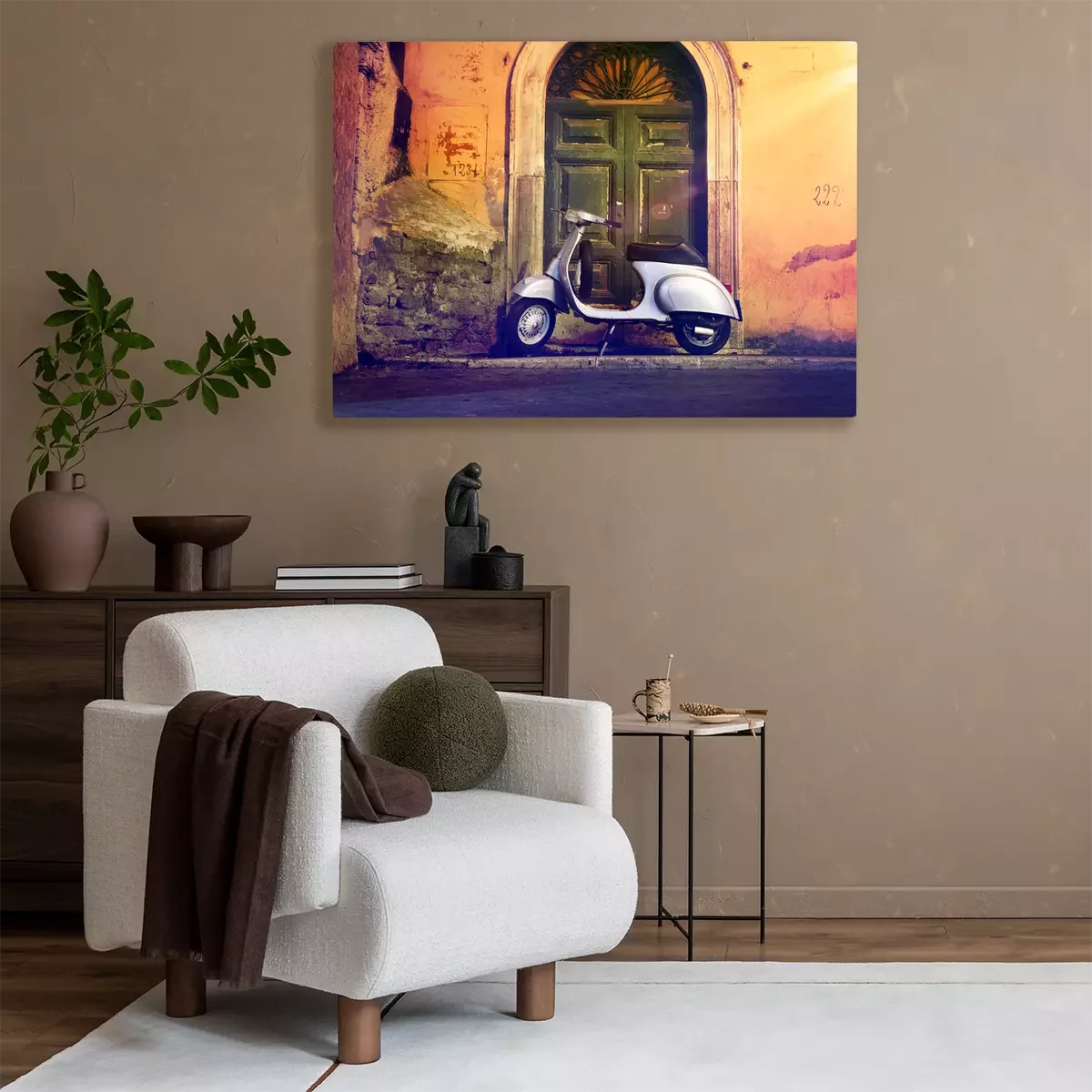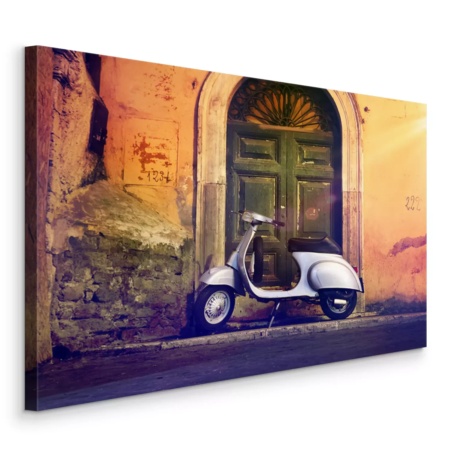 Tableau : Rouleau motorroller nachts vor Haustür Italien - Scooter italien devant une porte