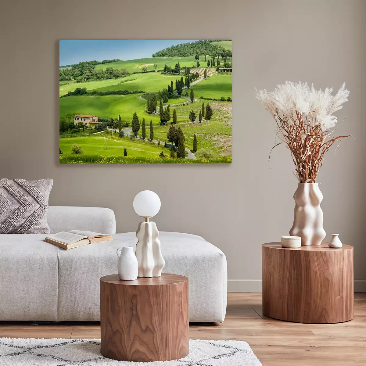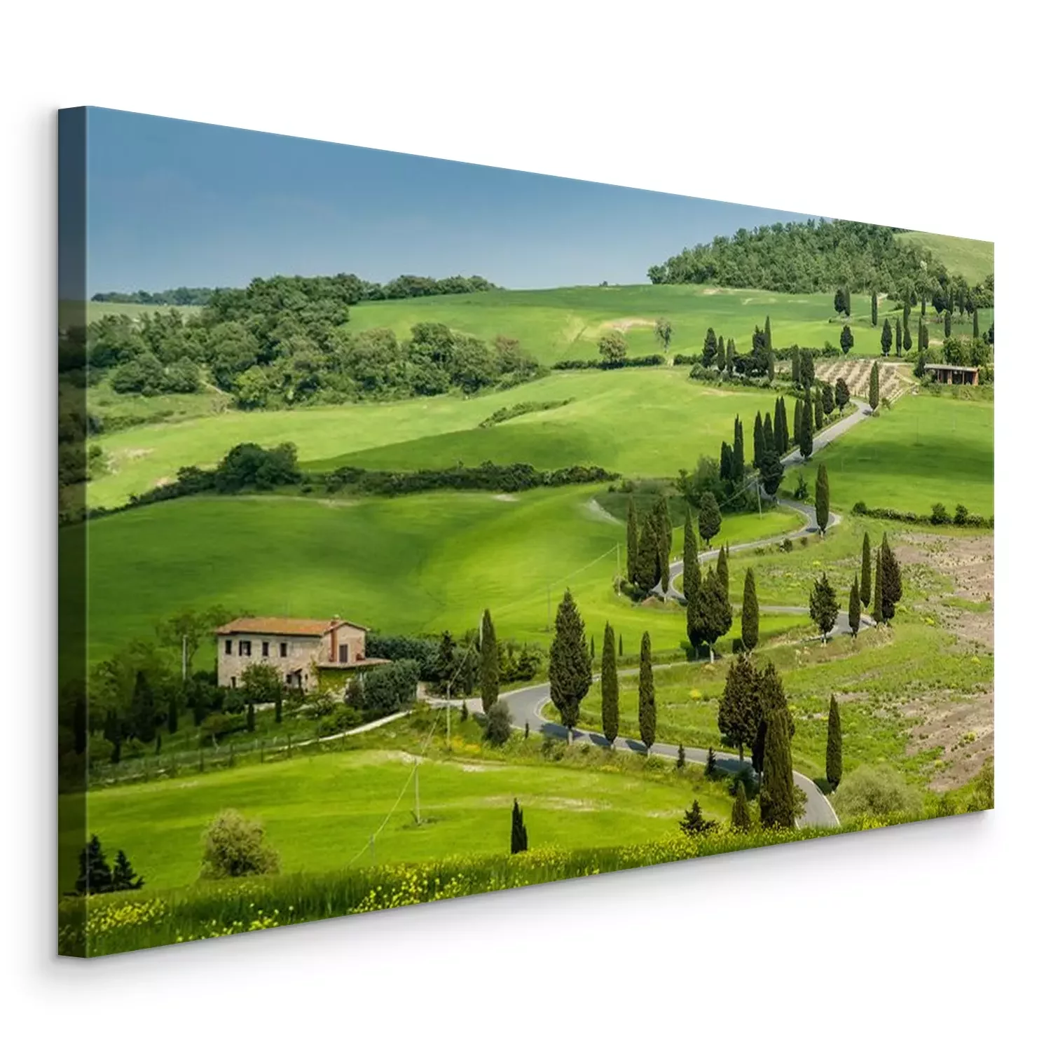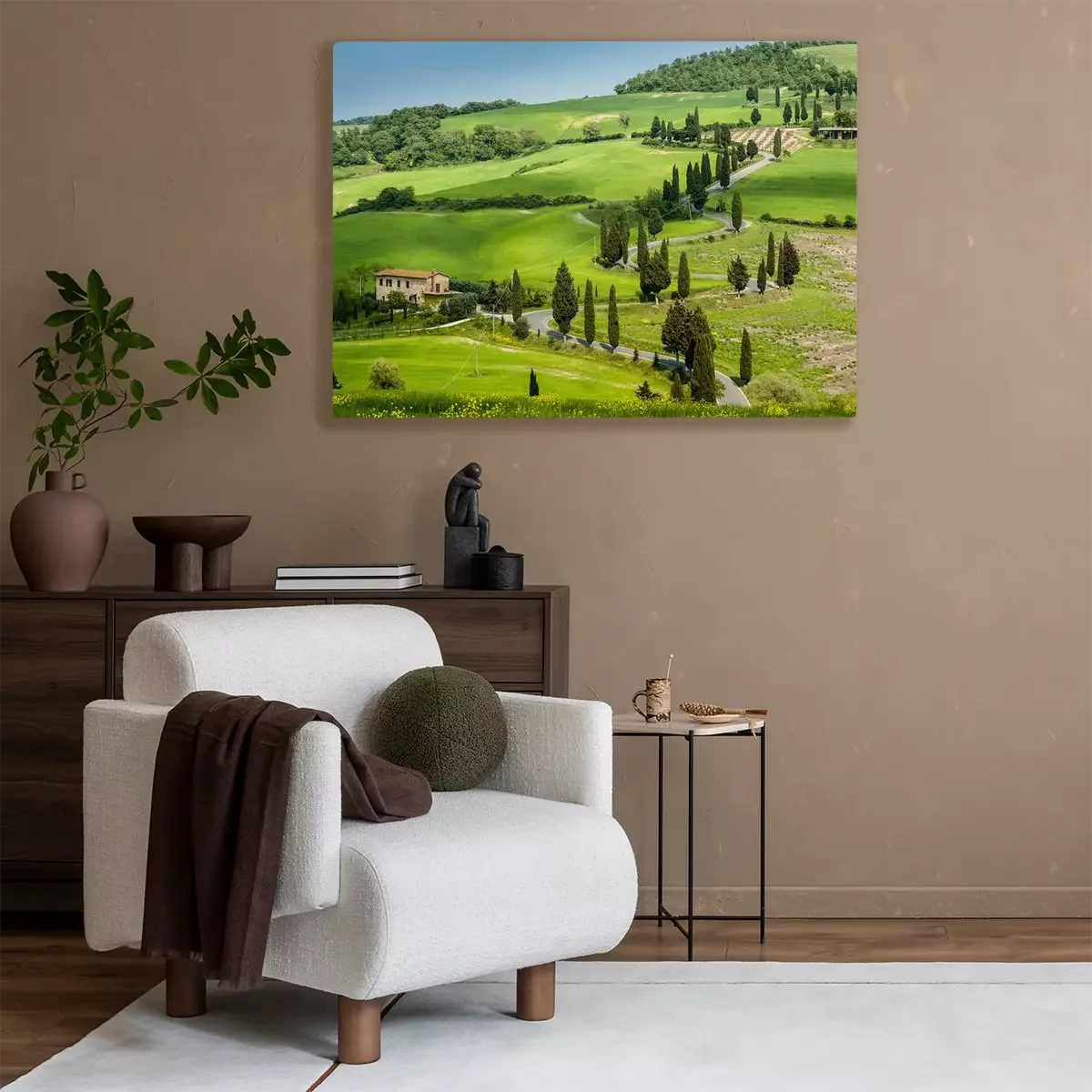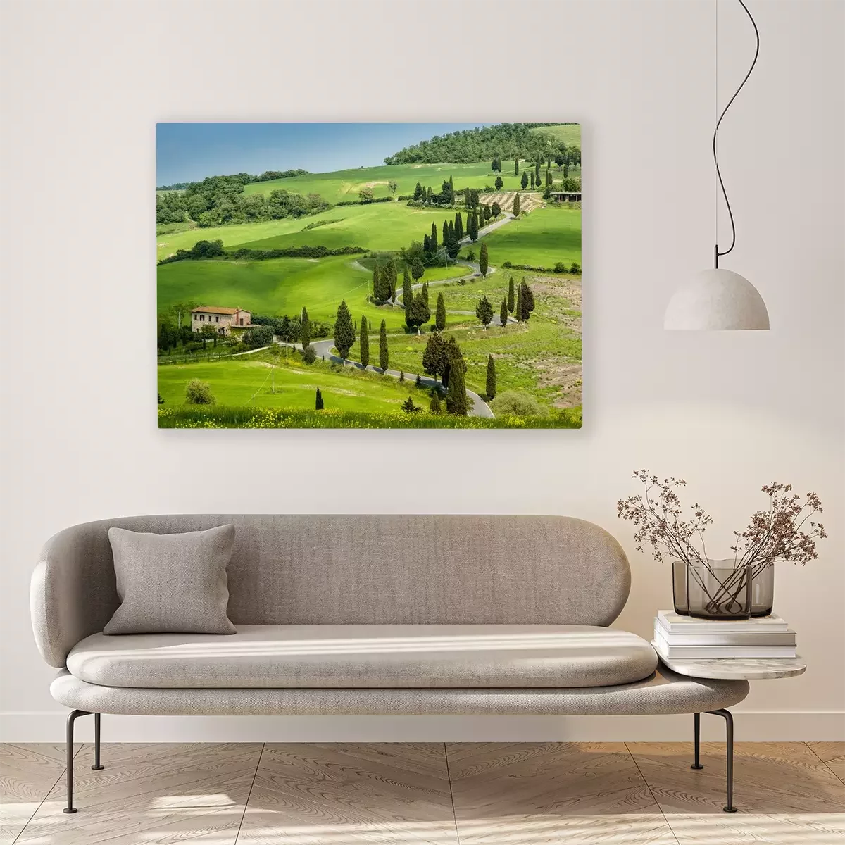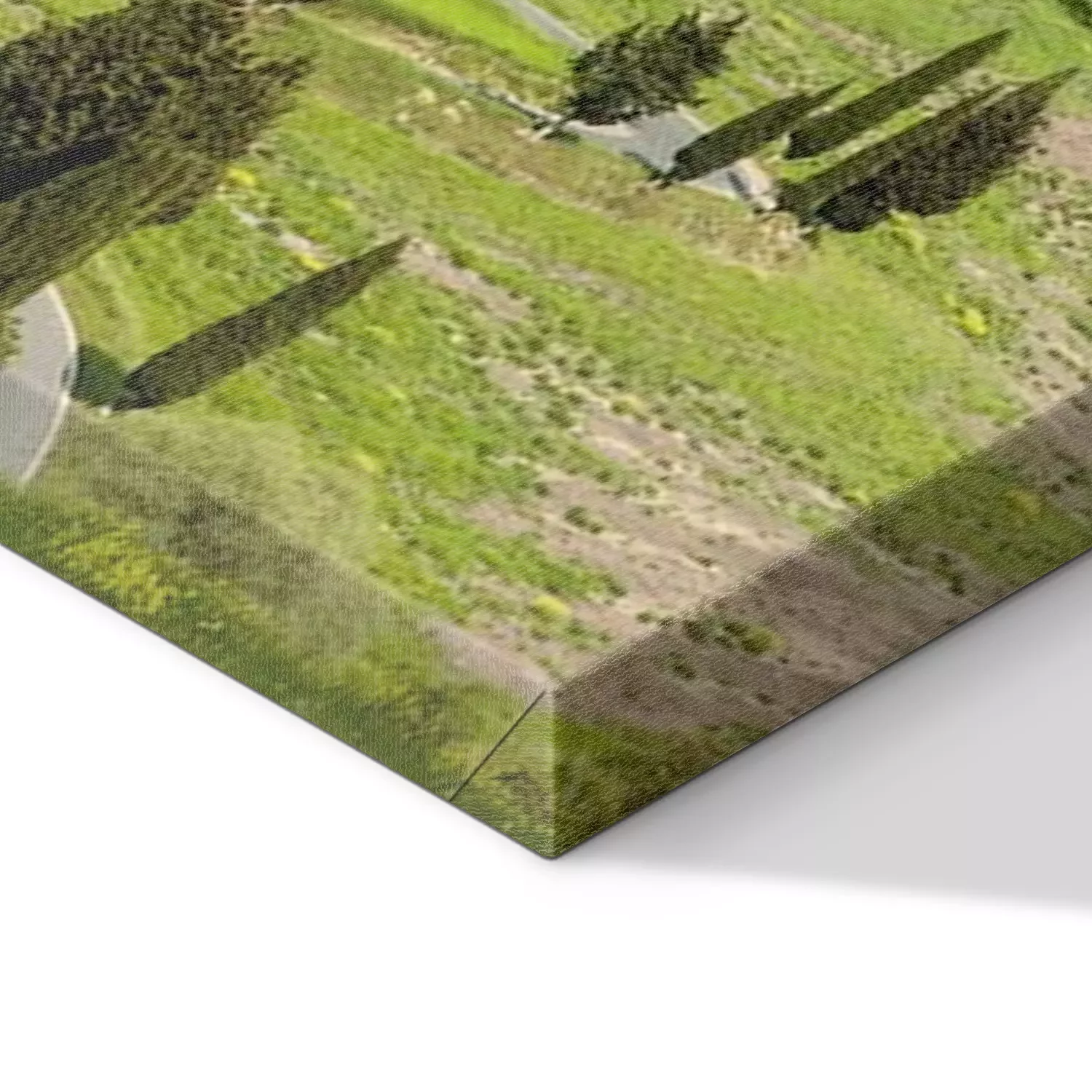 Tableau : Route avec des courbes et des cyprès en Toscane, Italie