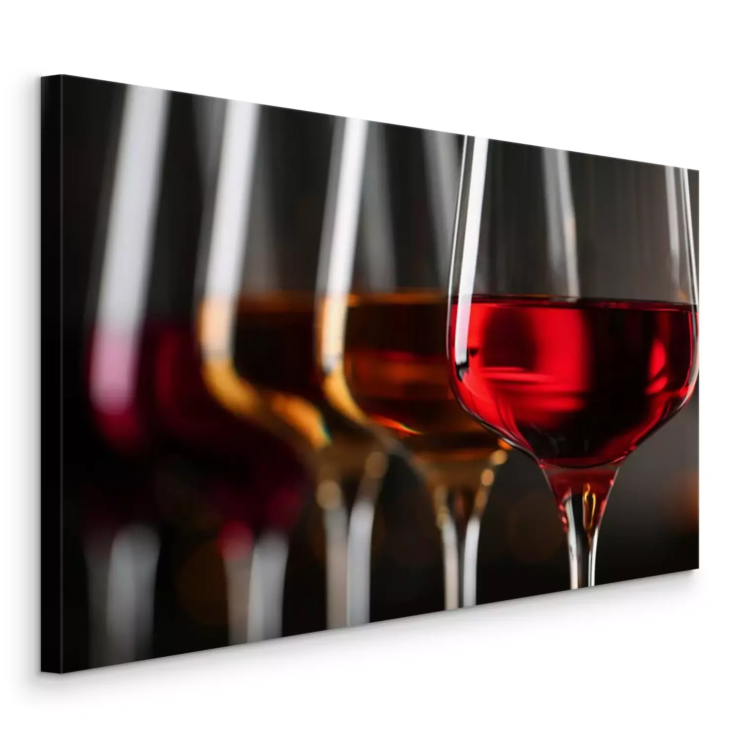 Tableau  Row of glasses with different wines on blurred background, closeup
