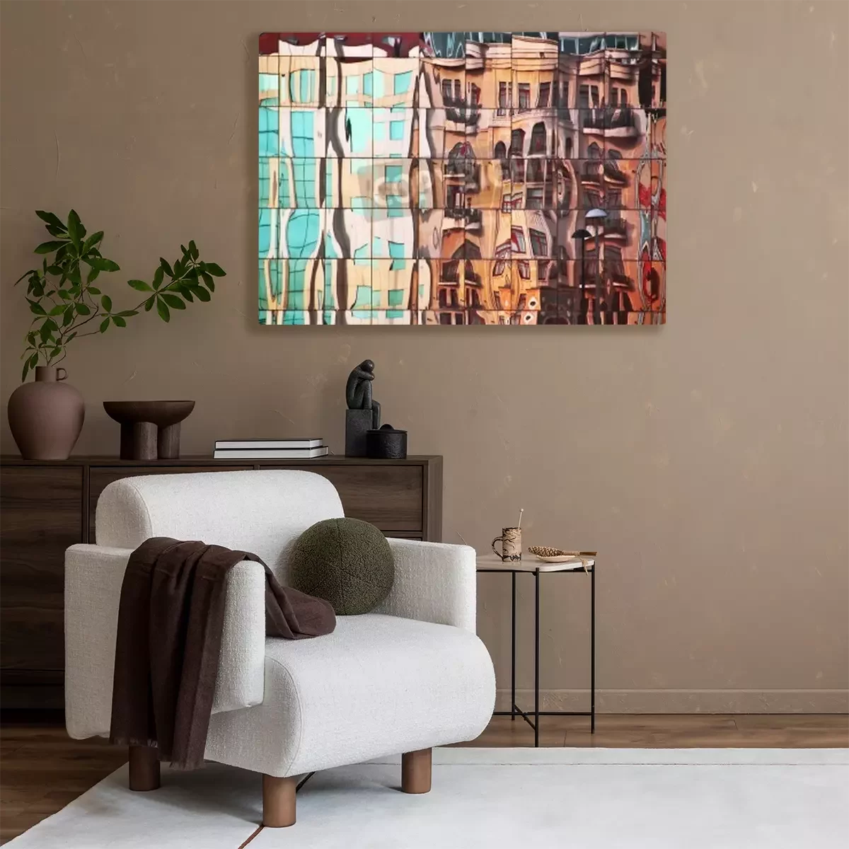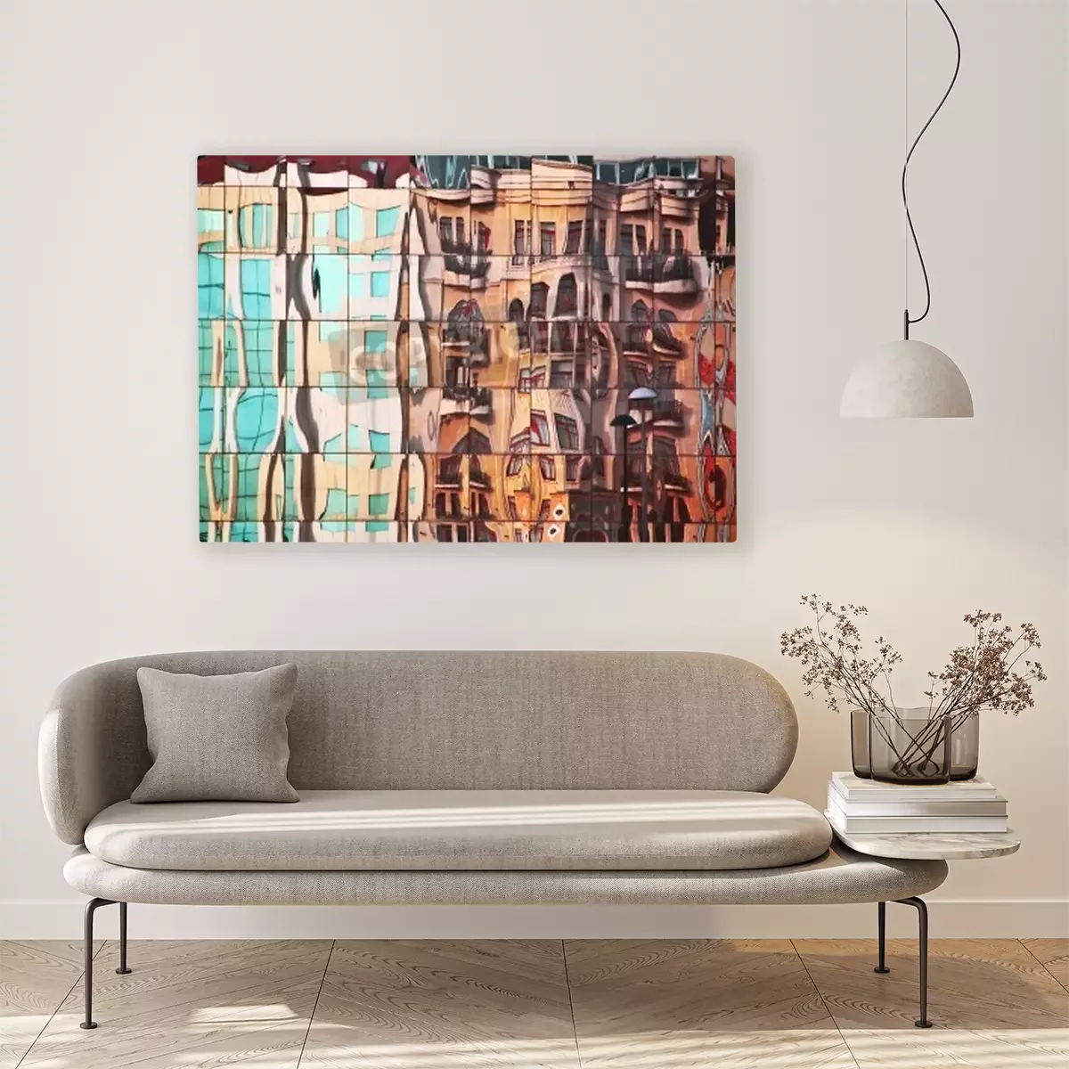 Tableau  Rue Abstrait mirrorred dans le bâtiment de verre