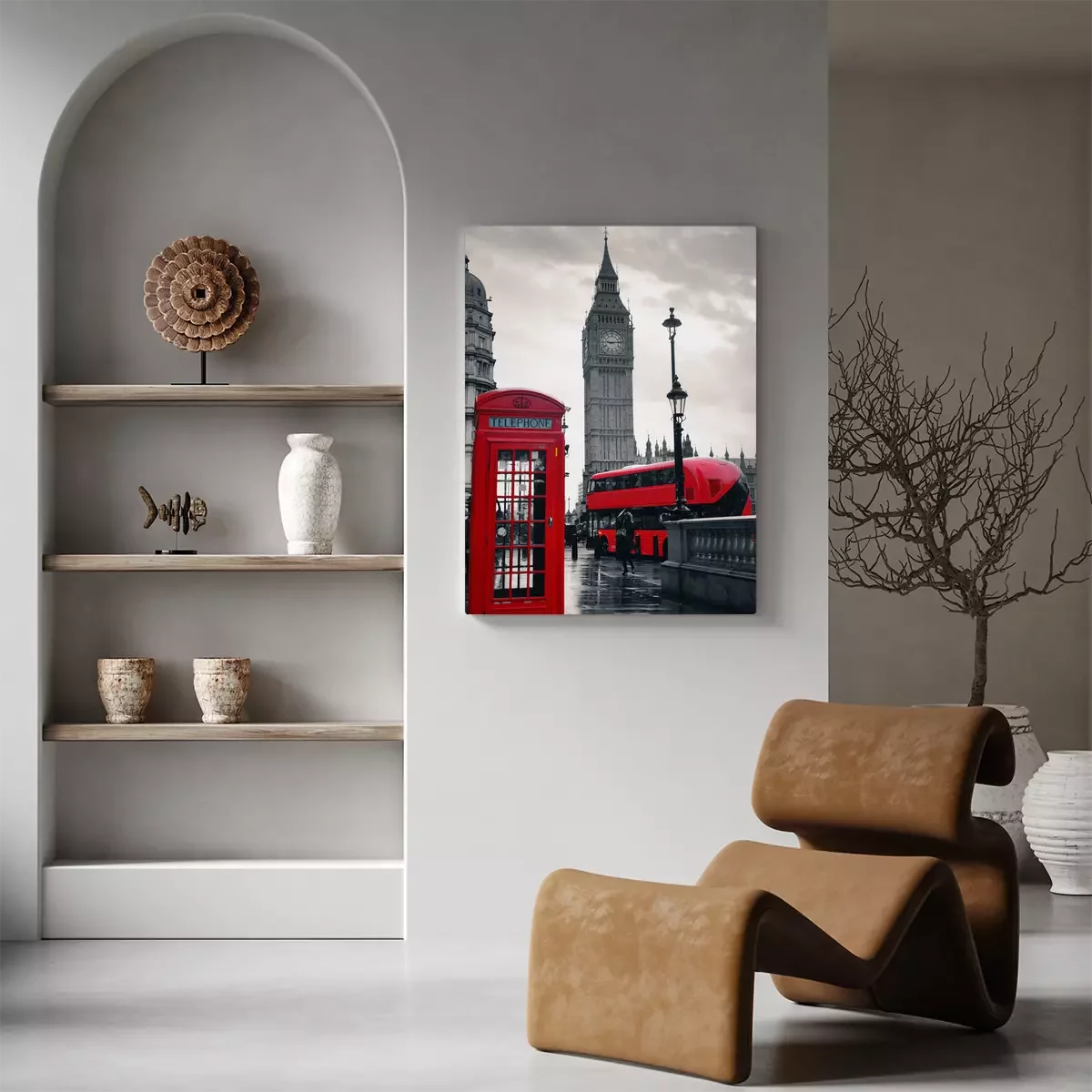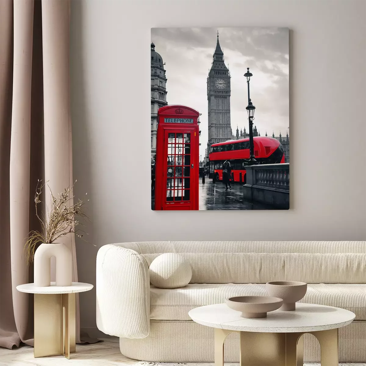 Bus rouge et Londres en gris