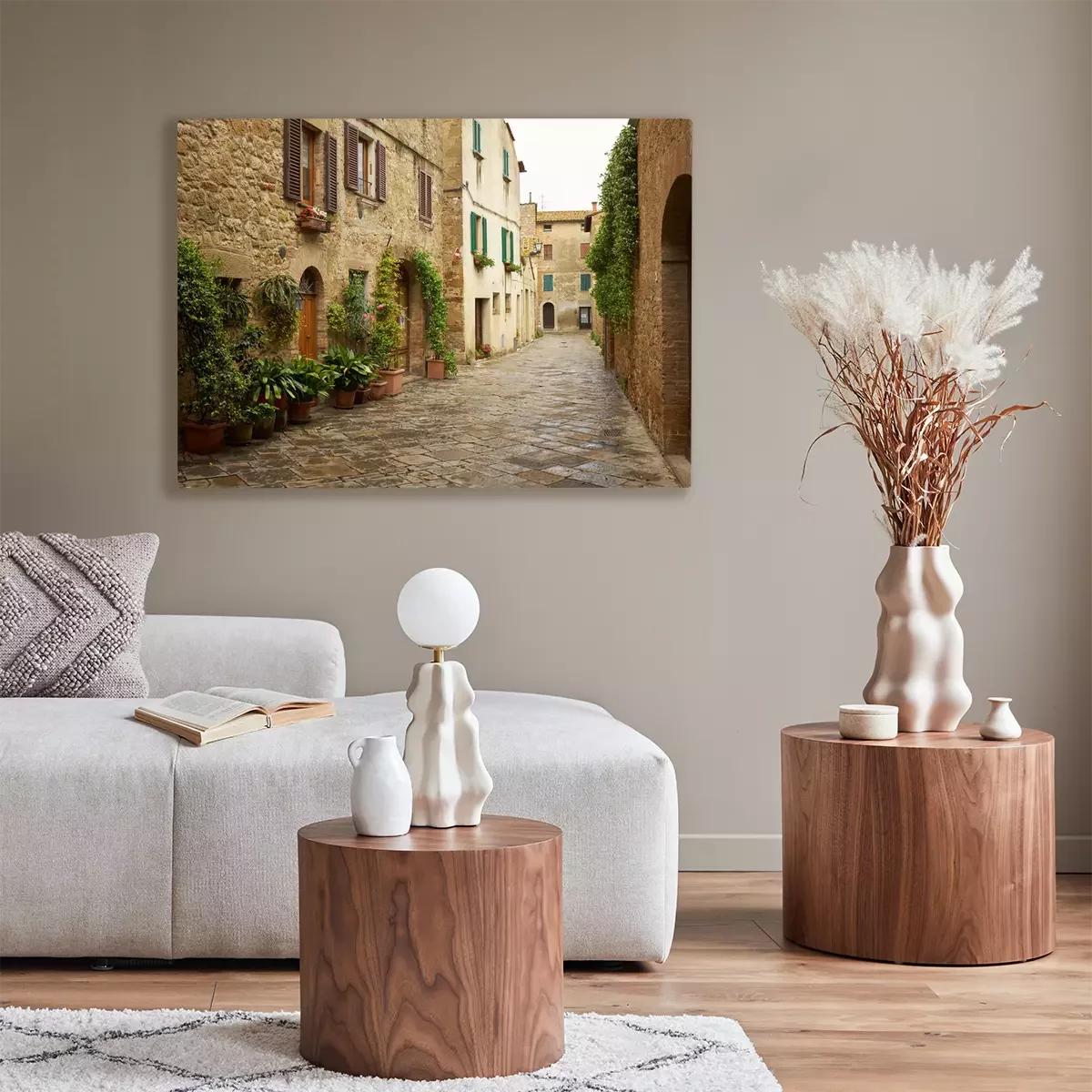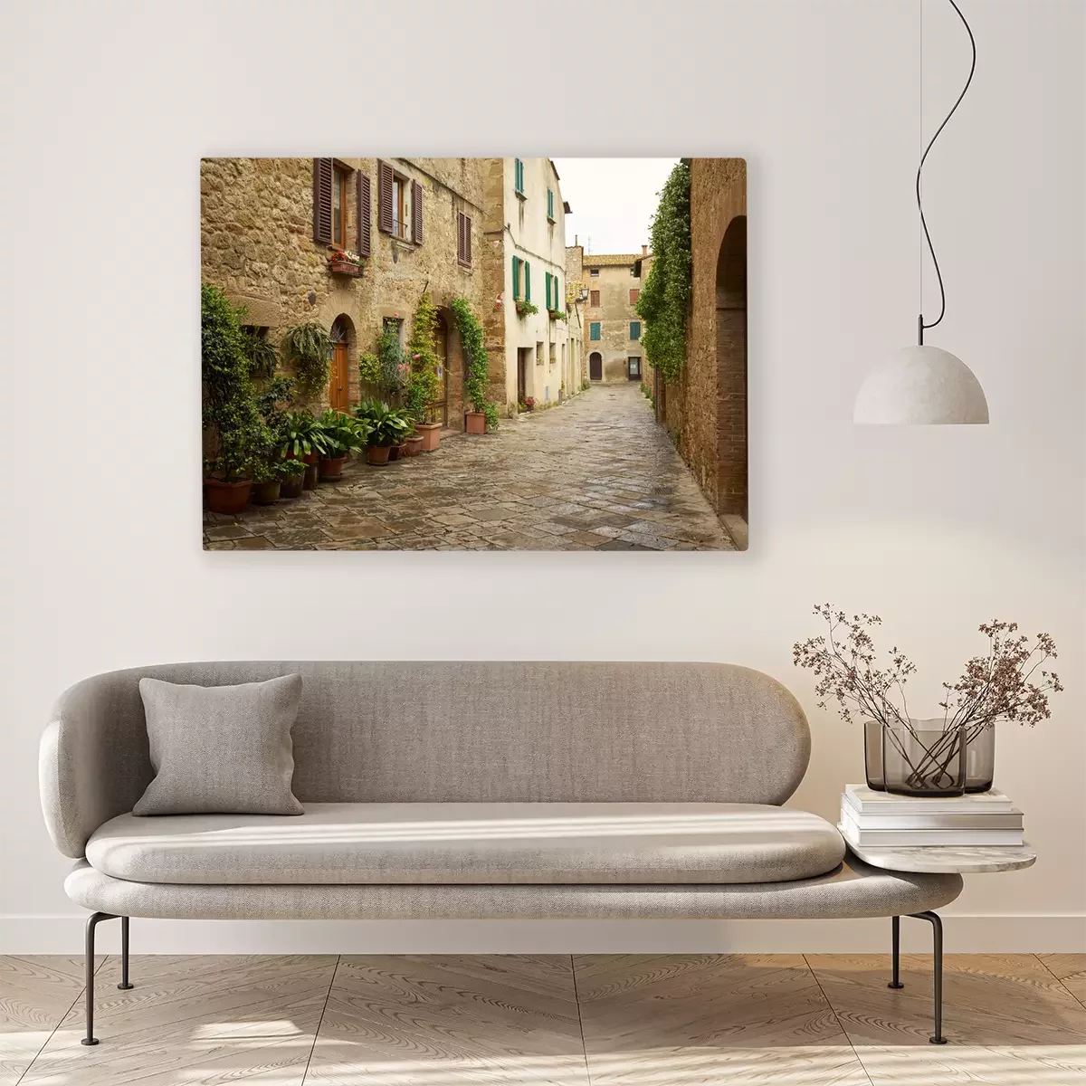 Tableau : Rues pittoresques traditionnelles de vieux villages italiens