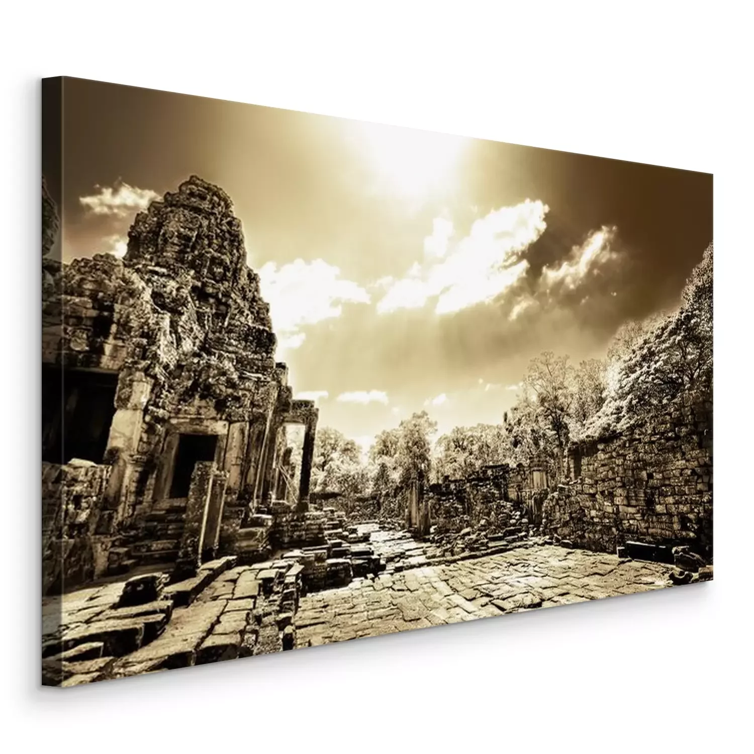 Tableau  Ruines du temple bouddhiste d'Asie au Cambodge - monochrome