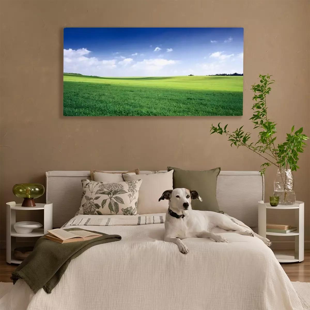 Tableau  russie paysage d'été - fileds vert, le bleu ciel et blanc c