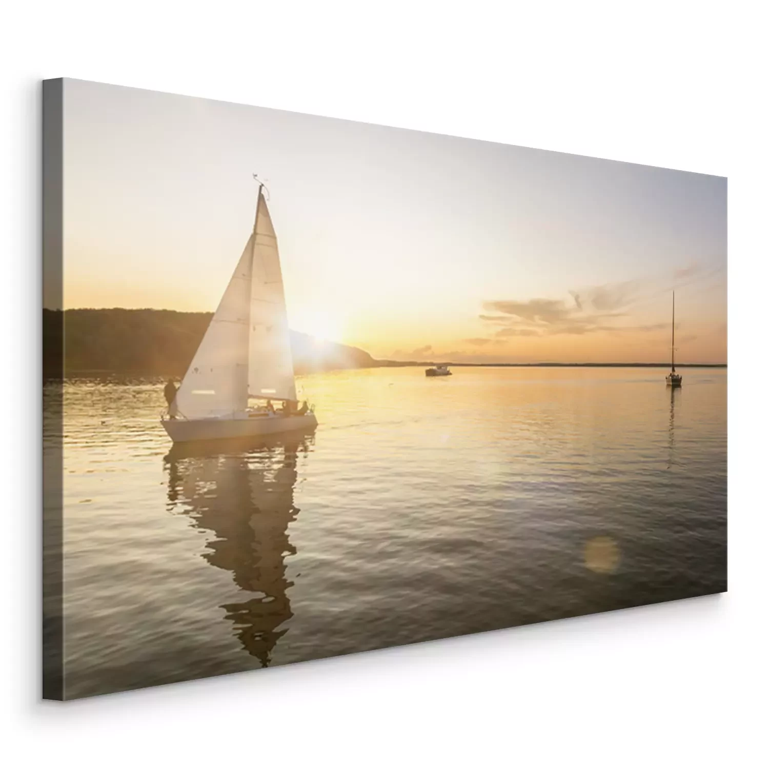 Tableau  Sailing boats coming back into the harbor during beautiful sunset at the Baltic Sea