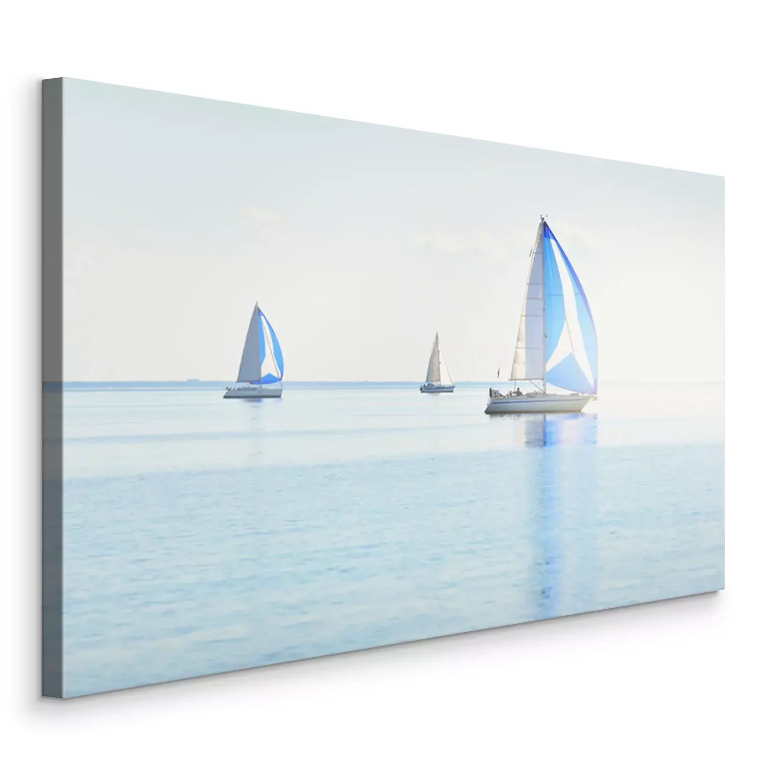 Tableau  Sailing yacht regatta. Modern sailboats racing with blue spinnaker sails. Clear summer day. Kiel, Germany. Sport and recreation, transportation, private wessel, vacations