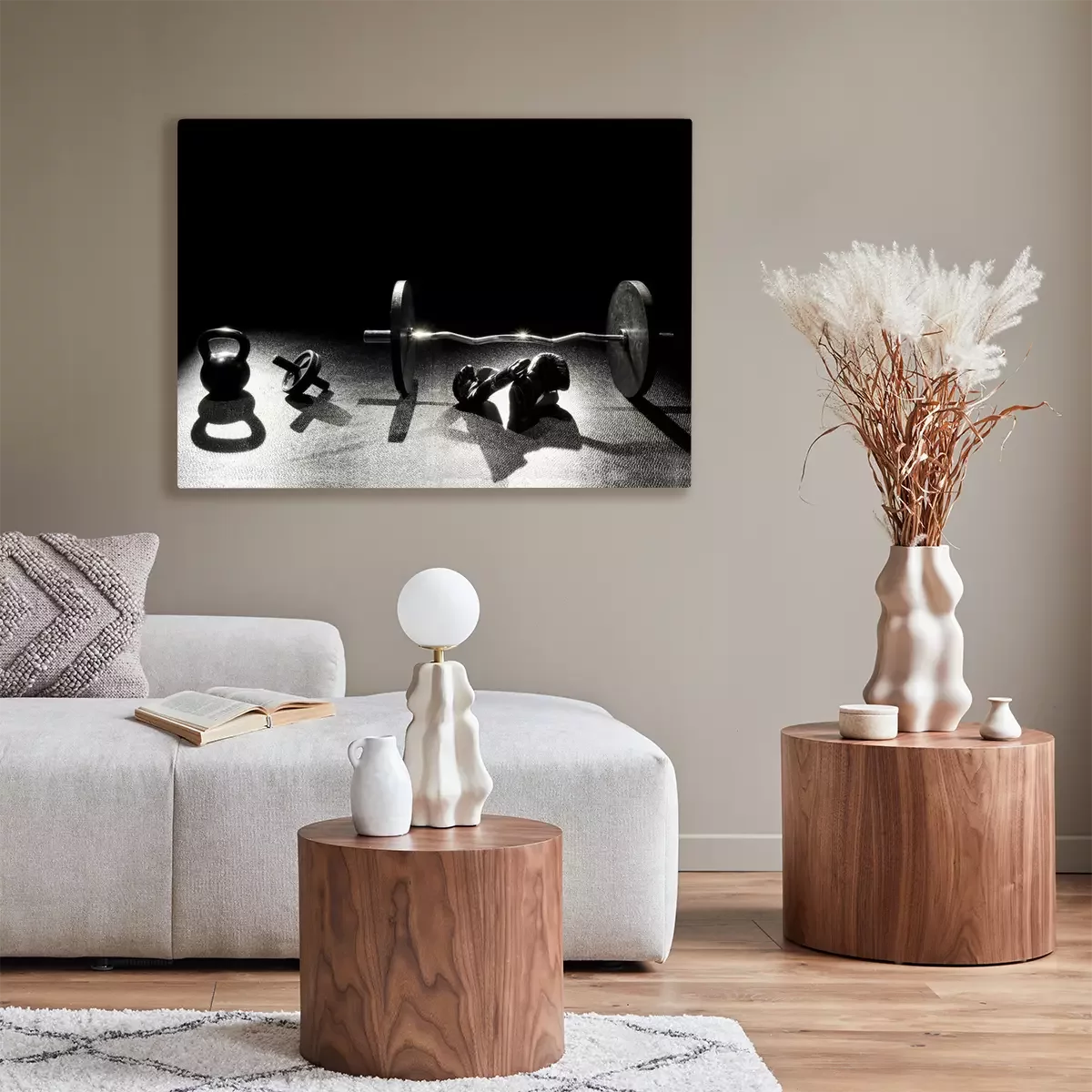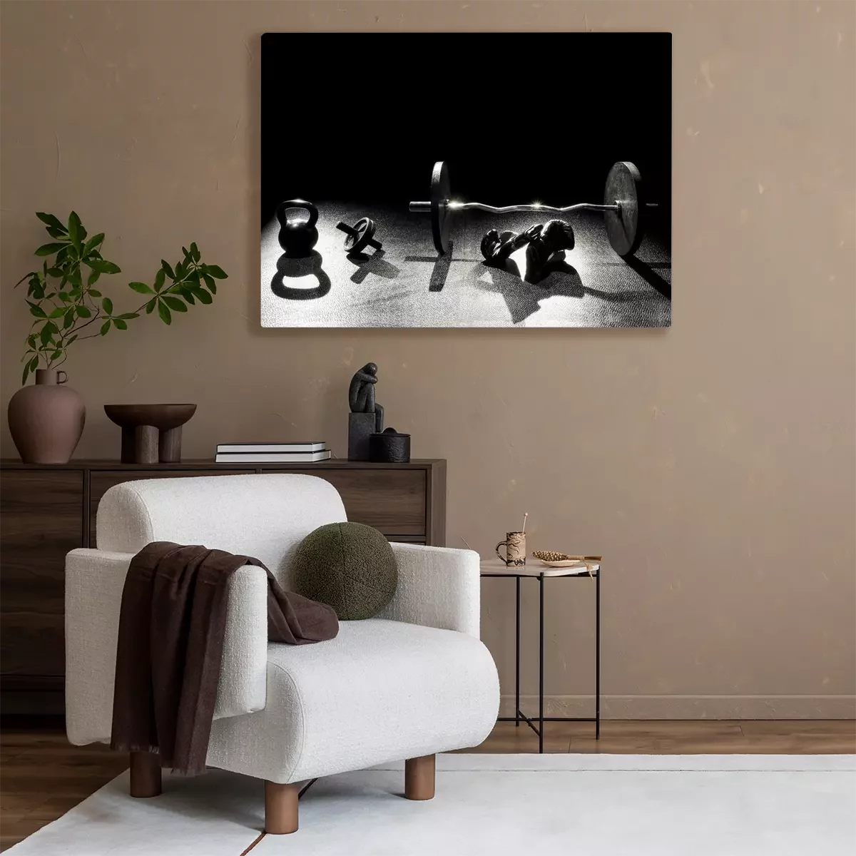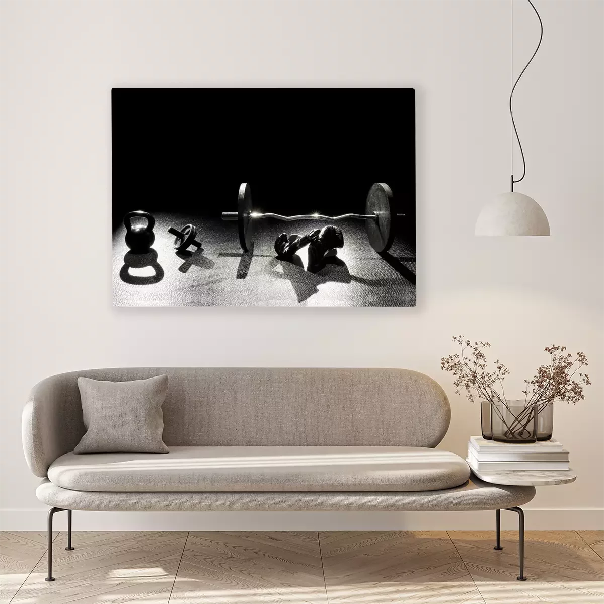 Tableau : Salle de musculation avec des gants de boxe
