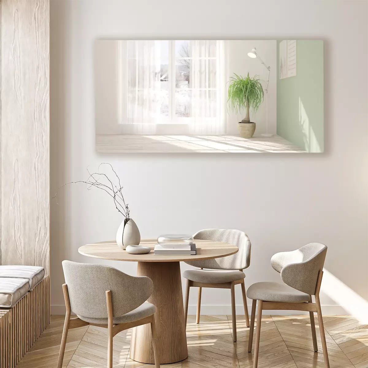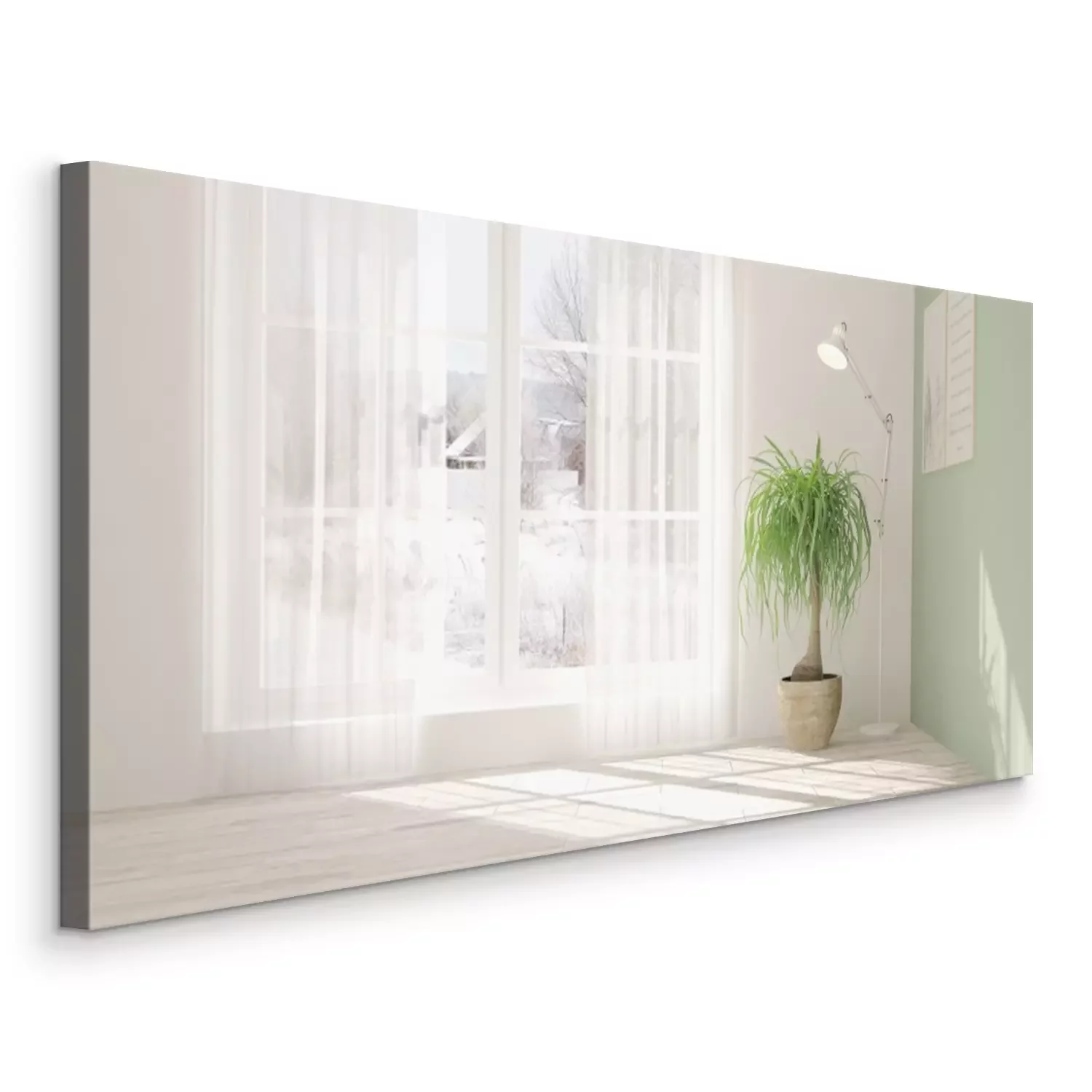 Tableau  Salle vide blanche avec paysage d'hiver dans la fenêtre. Design d'intérieur scandinave. Illustration 3D