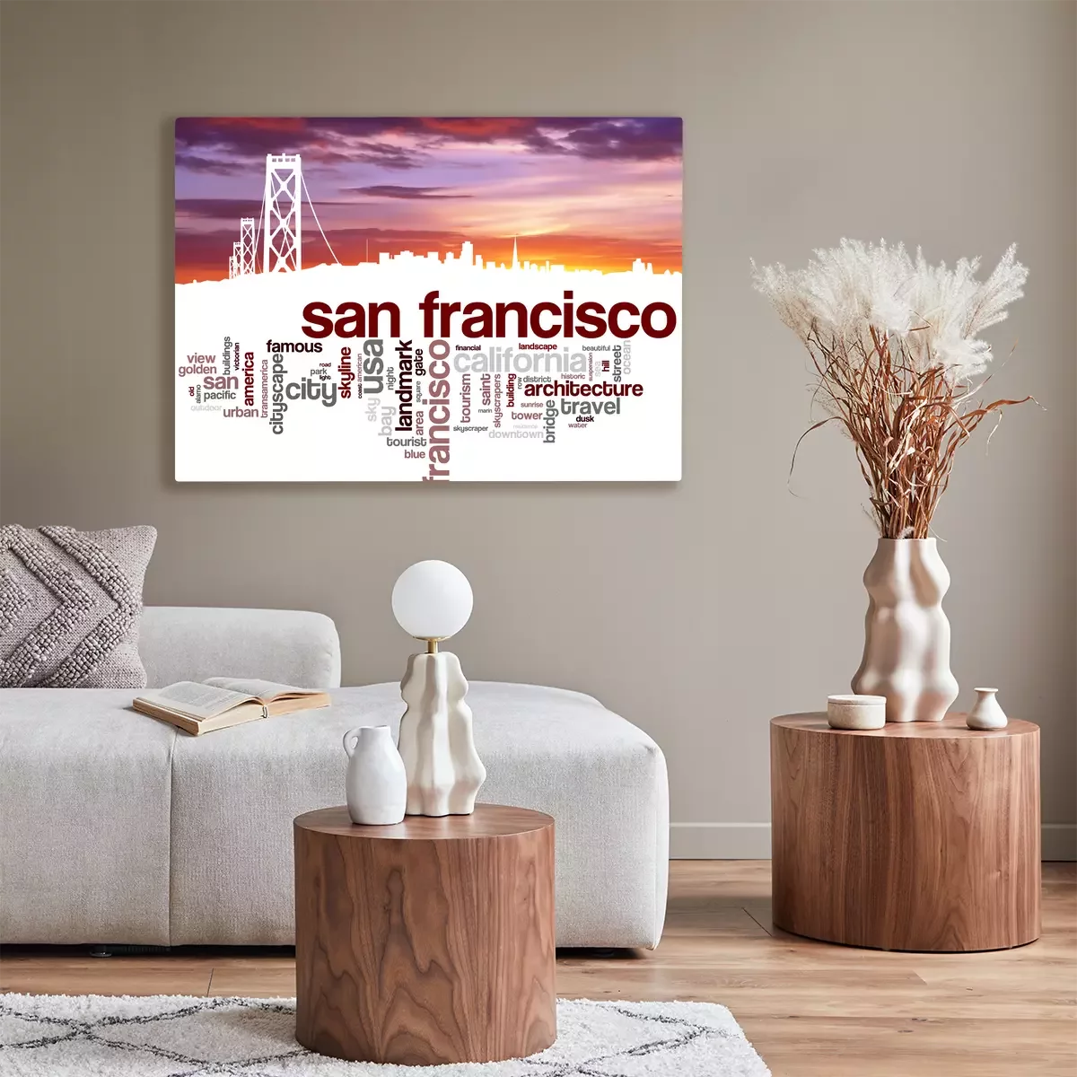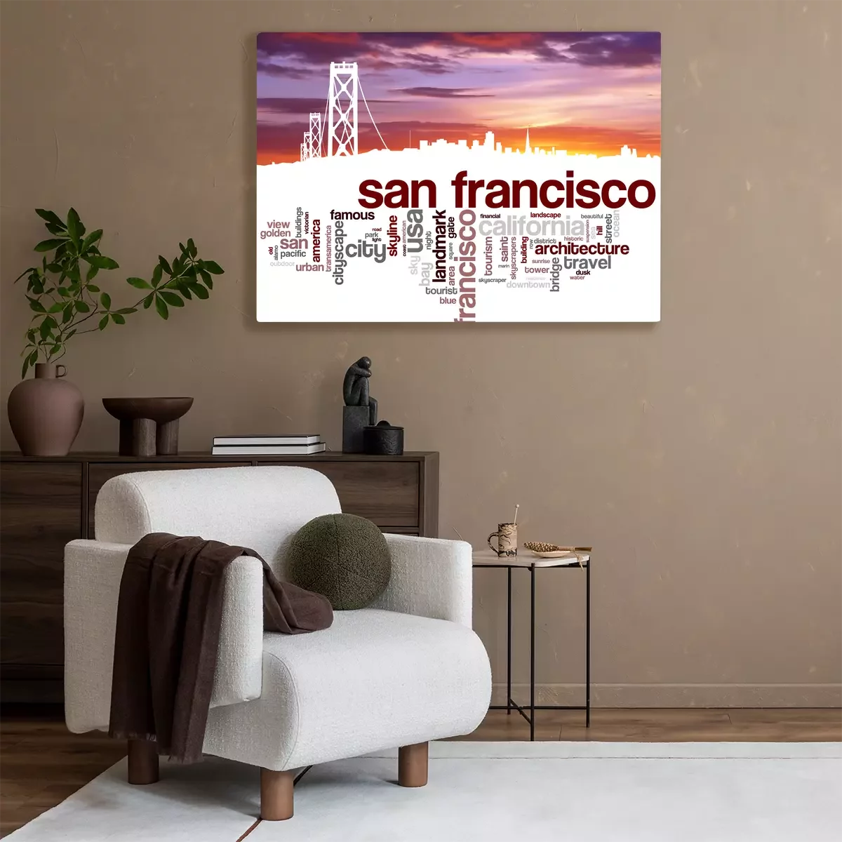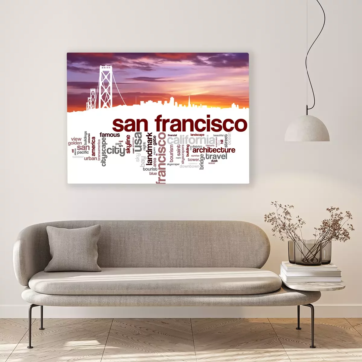 Tableau : San, ville, ville, Horizon, mot, nuage