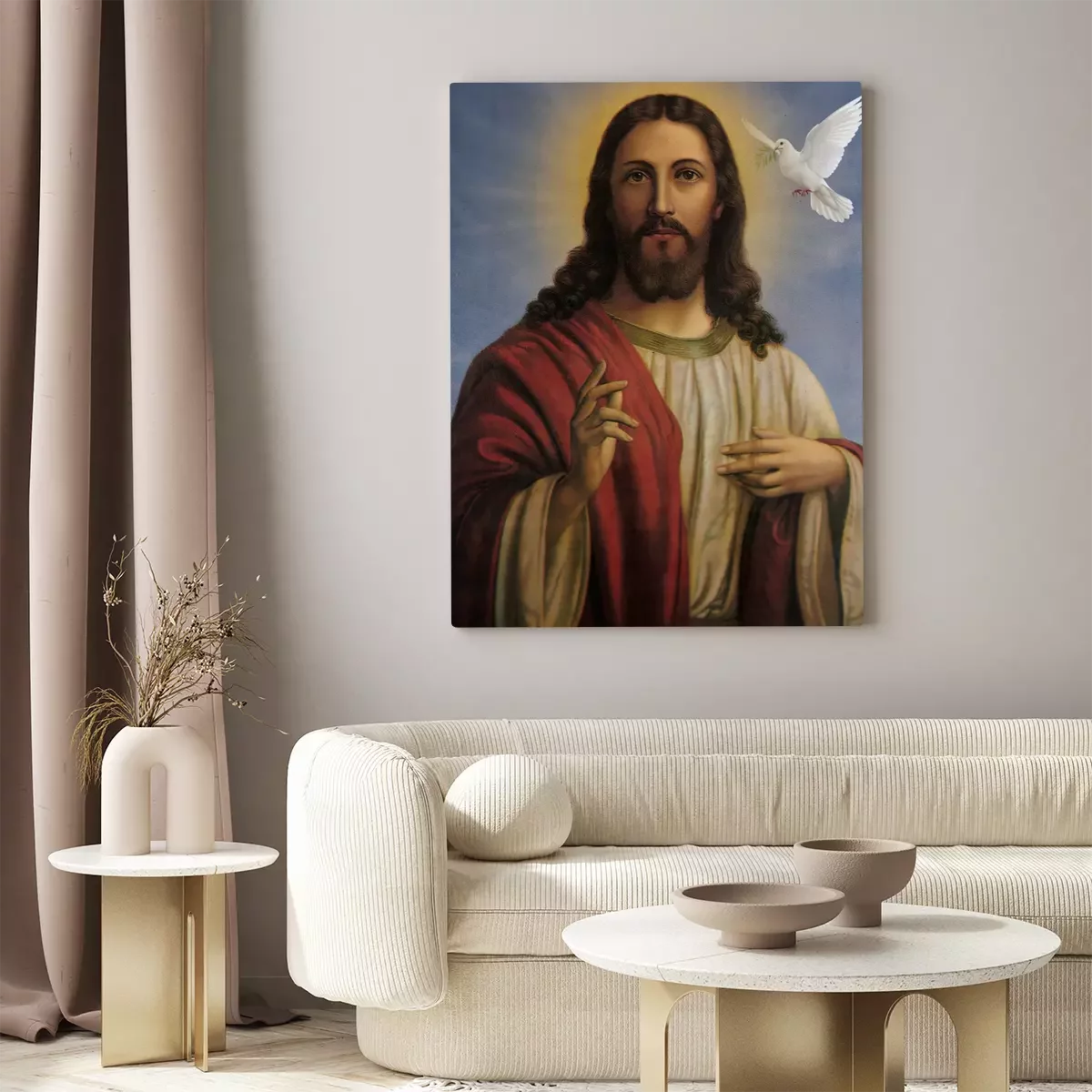 Sauveur divin avec un oiseau blanc